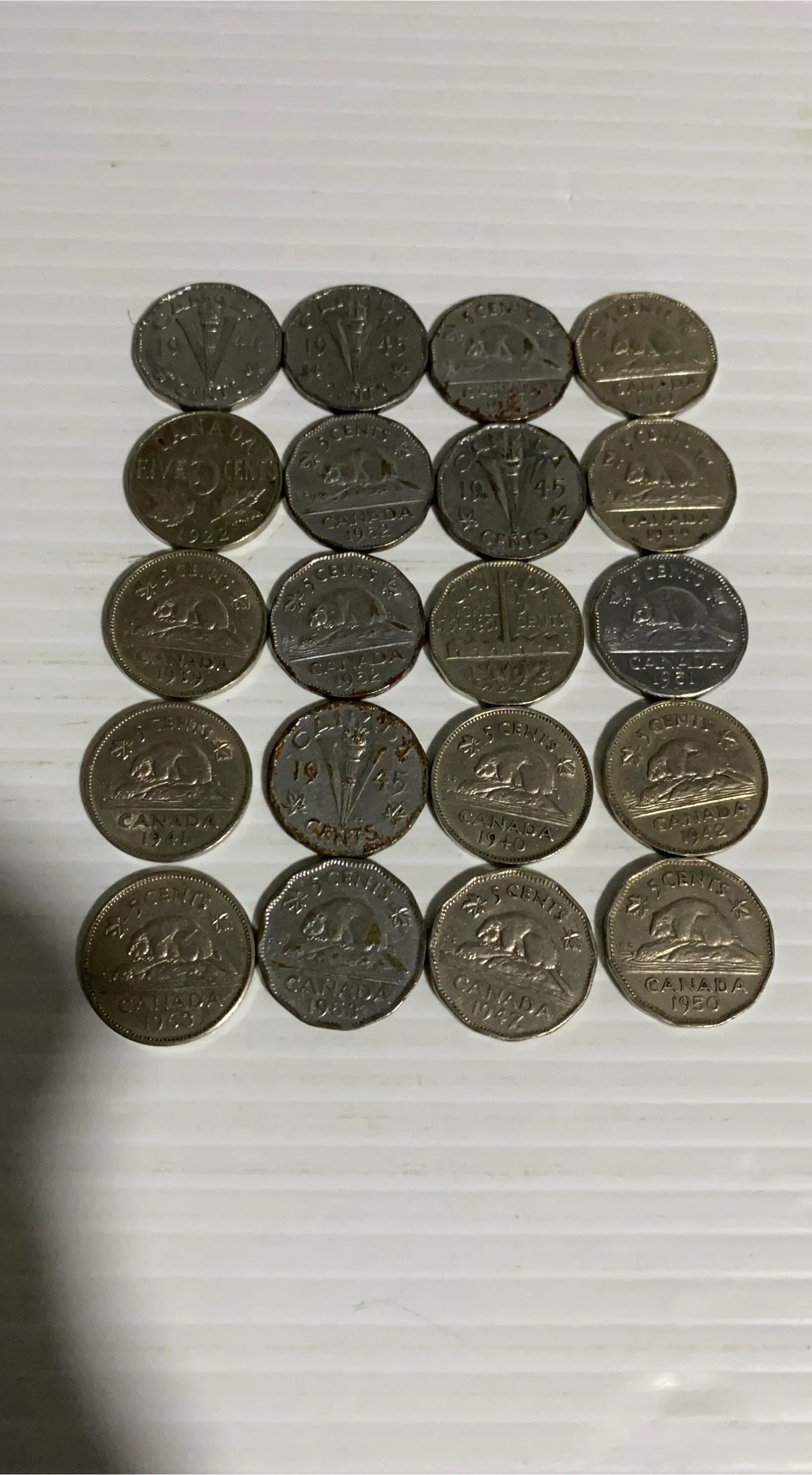 Vintage 20 pieces Canadian Five Cent Coins