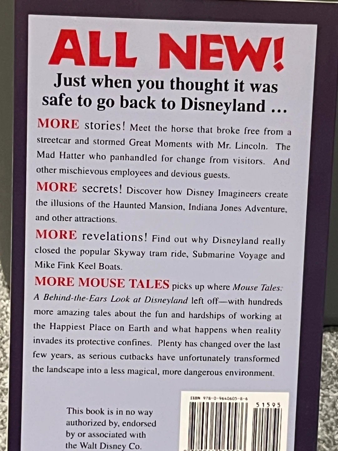 Selling the book "More Mouse Tales: A Closer Peek Backstage at Disneyland" by David Koenig. It's a behind-the-scenes look at Disneyland with stories, secrets, and revelations about the Happiest Place on Earth