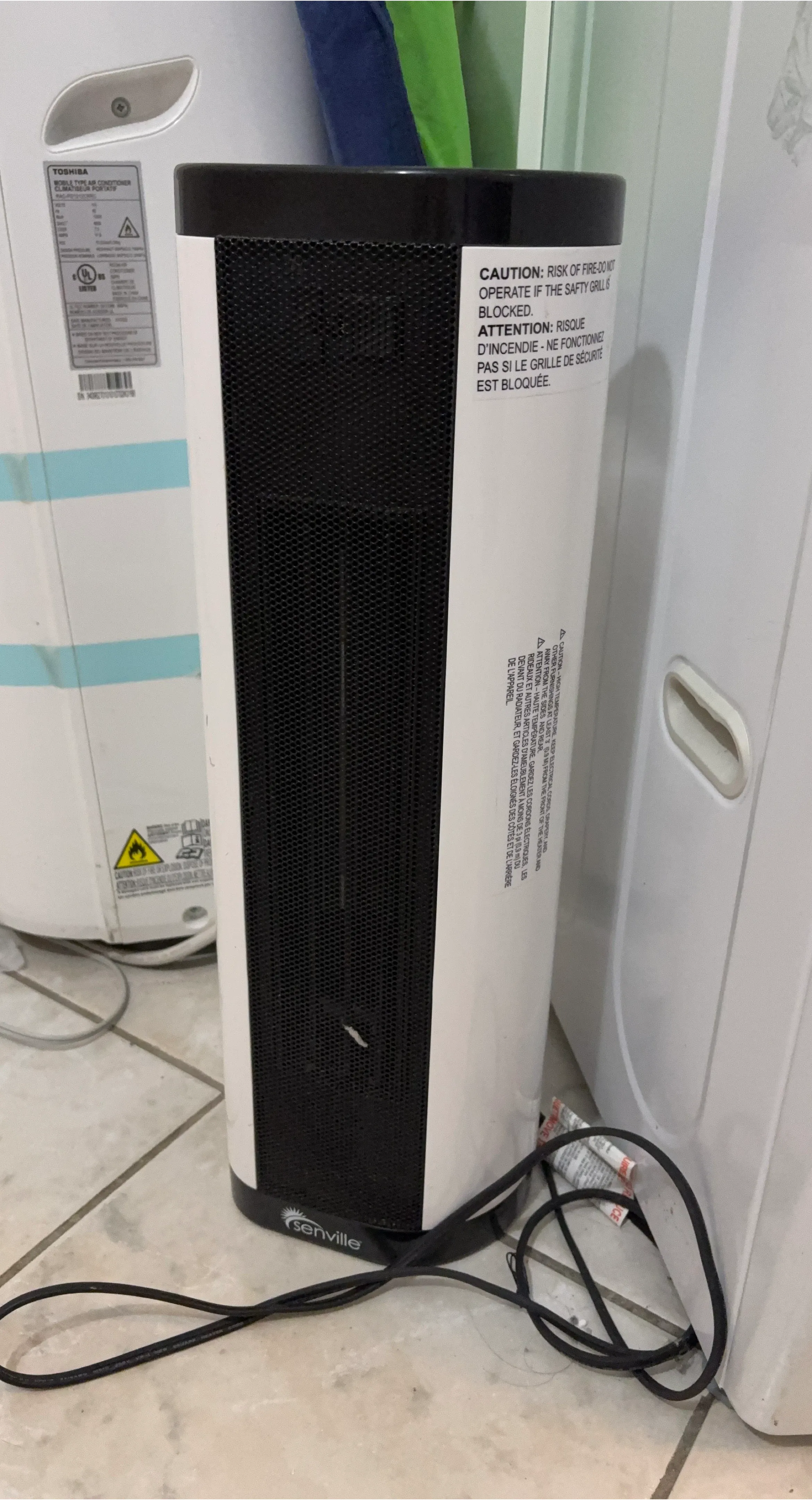 Selling a Senville tower heater! It's in great condition and ready to keep you warm during the colder months. Please be aware of the safety cautions printed on the side of the heater.