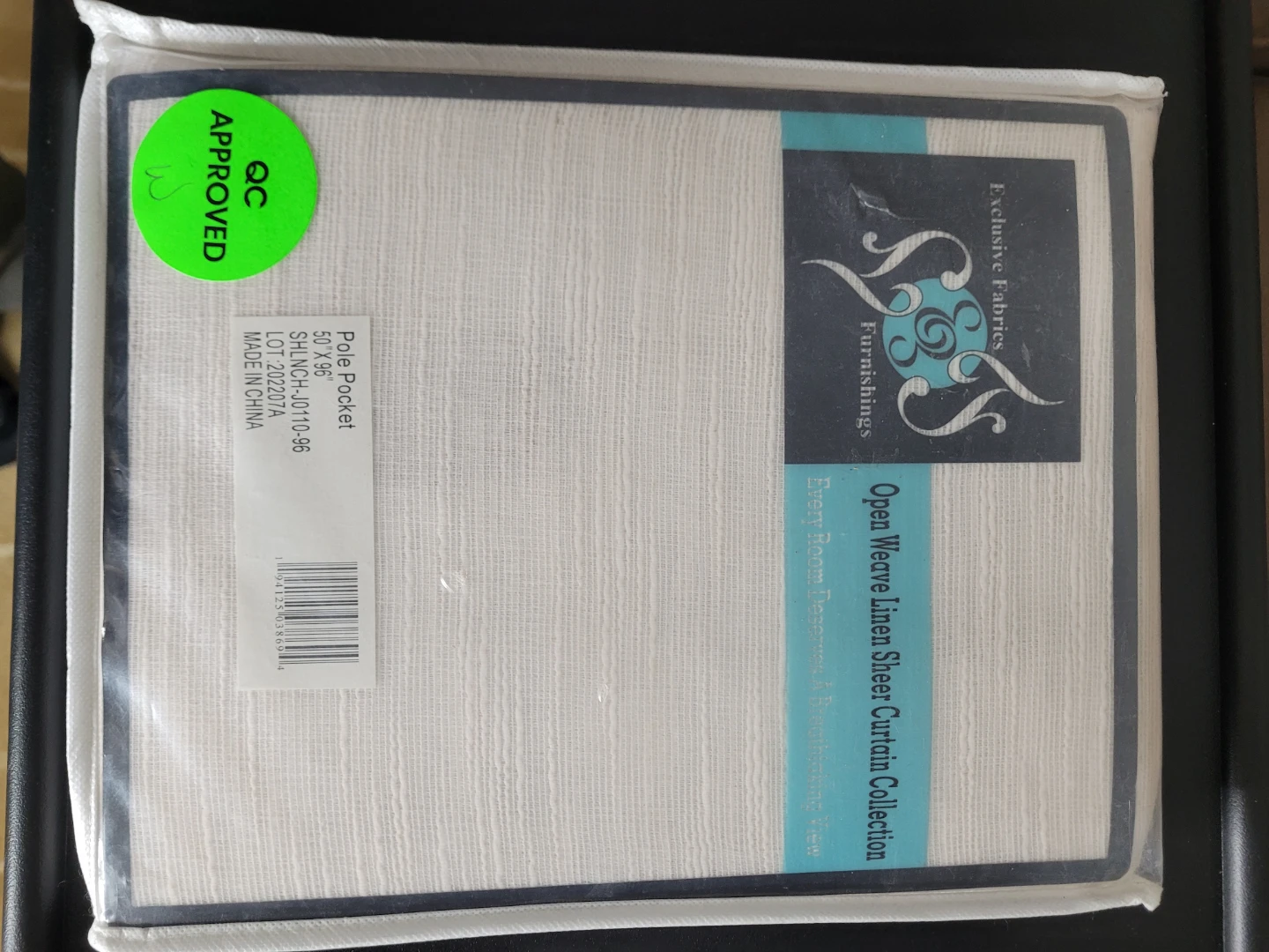 Selling a new set of Exclusive Fabrics Open Weave Linen Sheer Curtains! They measure 50" x 96" and are still in their original packaging. Perfect for adding a touch of elegance to any room