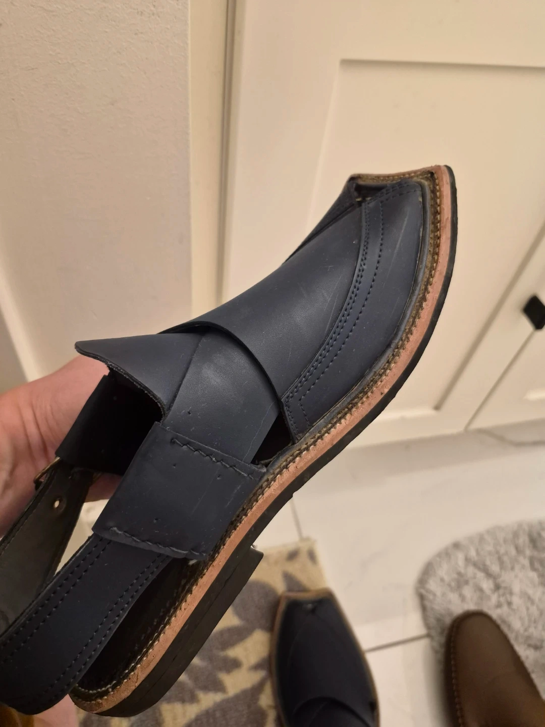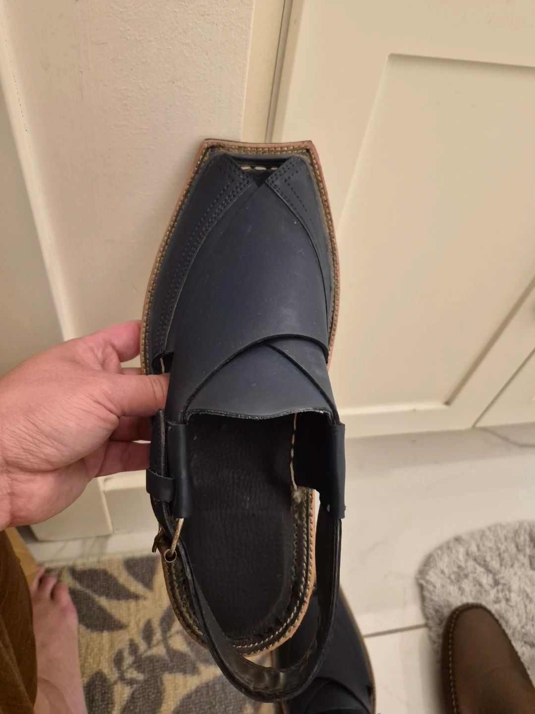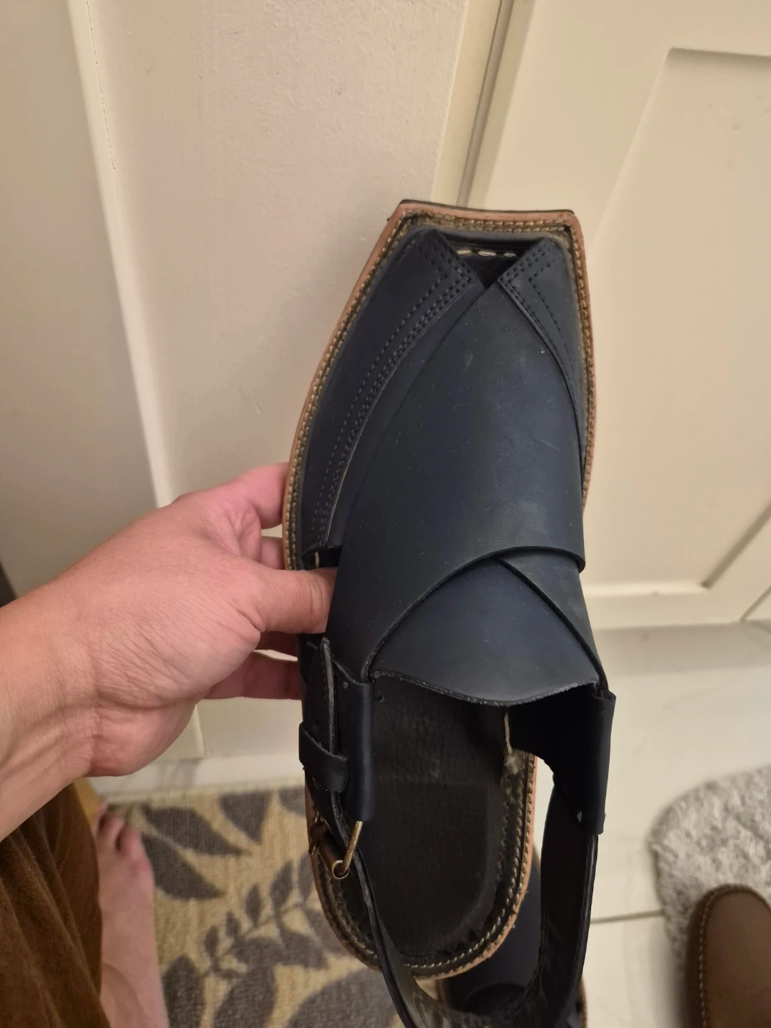 Selling a pair of men's Peshawari Chappal sandals in size 7. These stylish and comfortable sandals are perfect for casual wear. They feature a classic design with a leather upper and a durable sole. Great for adding a touch of traditional flair to your outfit!