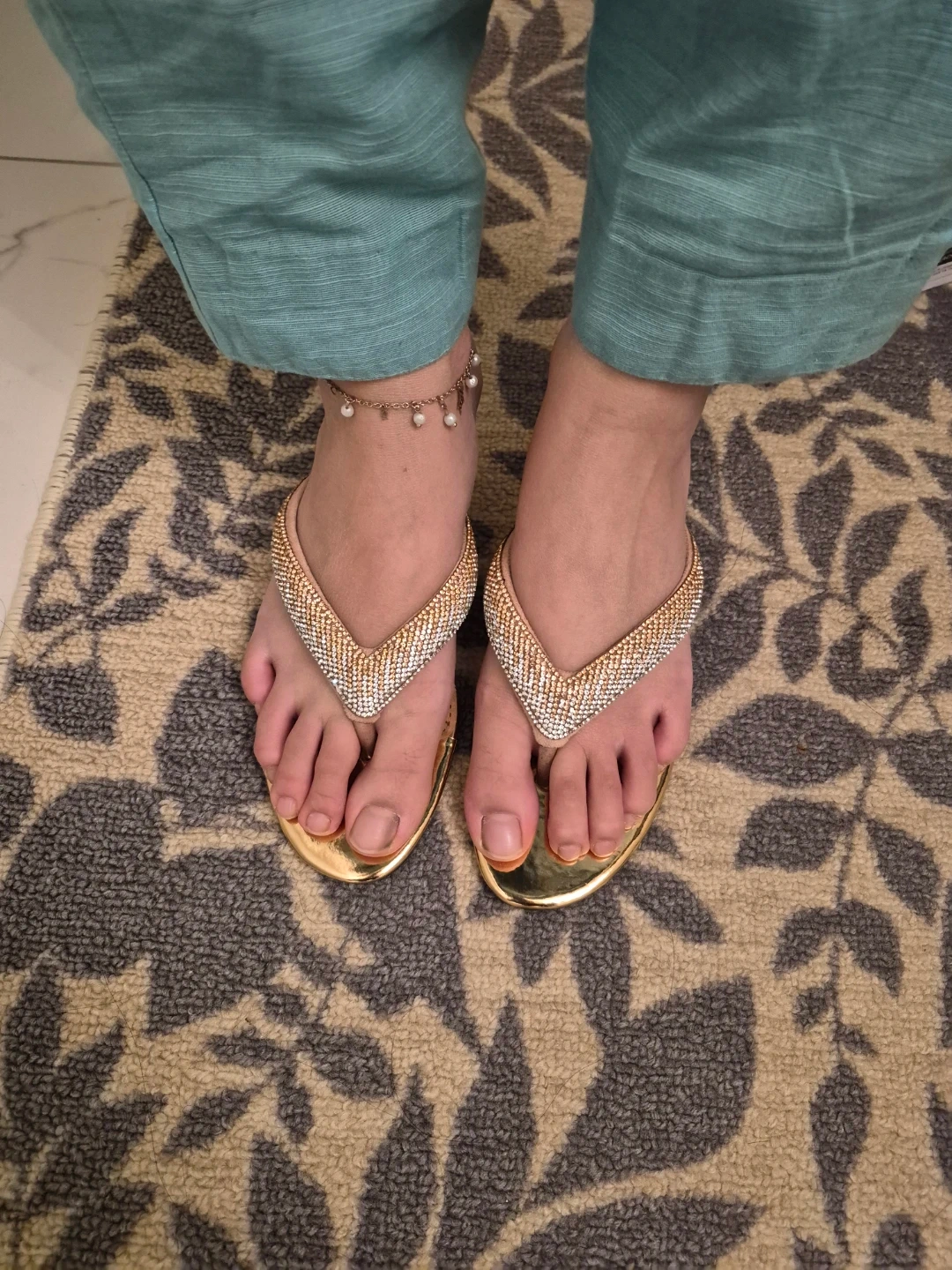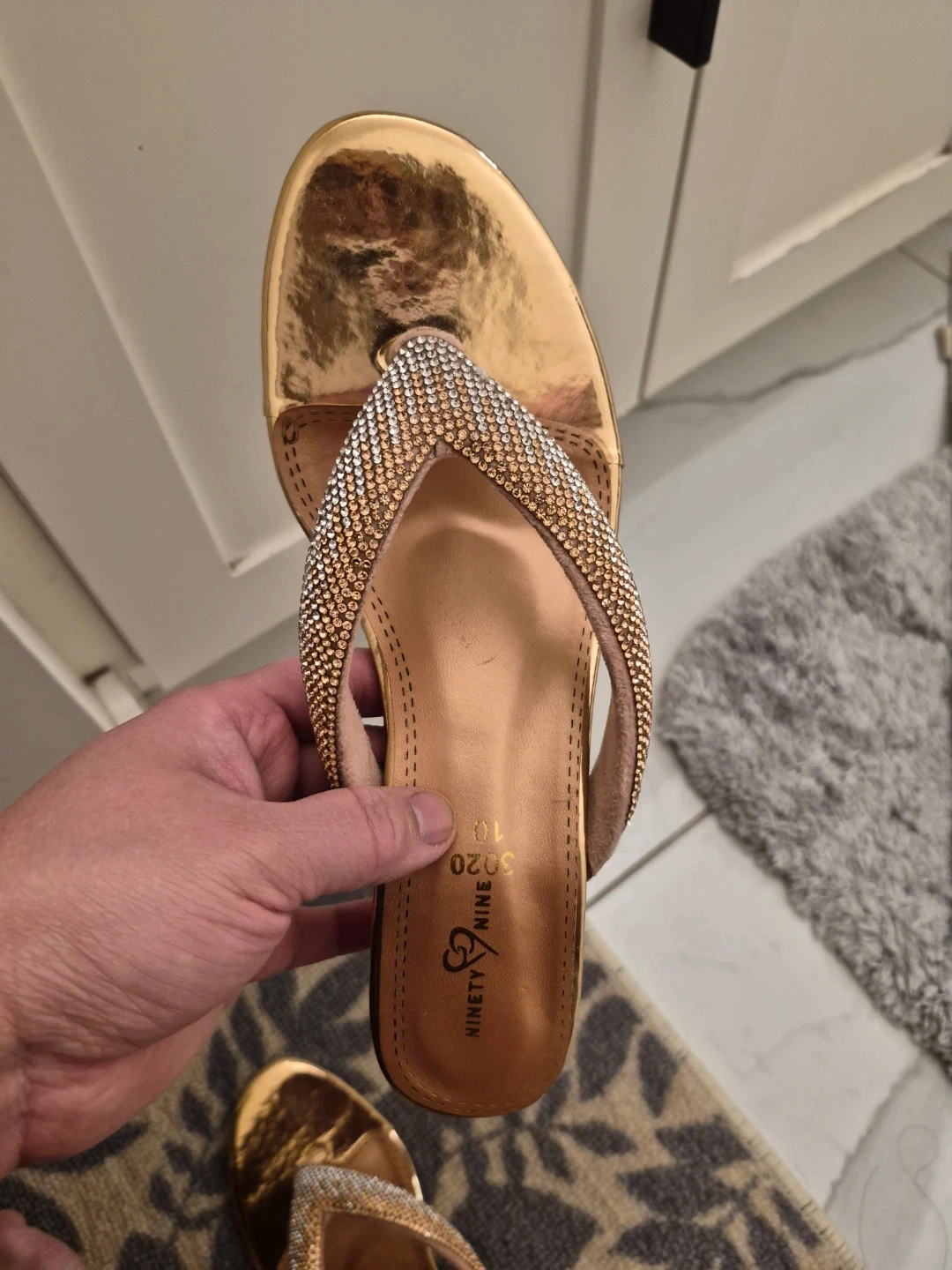Selling a pair of NINETY NINE sandals in gold! They are a women's size 10 and feature a sparkly, jeweled design on the straps. Perfect for adding a bit of glam to your summer outfits.Brand new. We brought from Pakistan but it didn't fit my daughter.