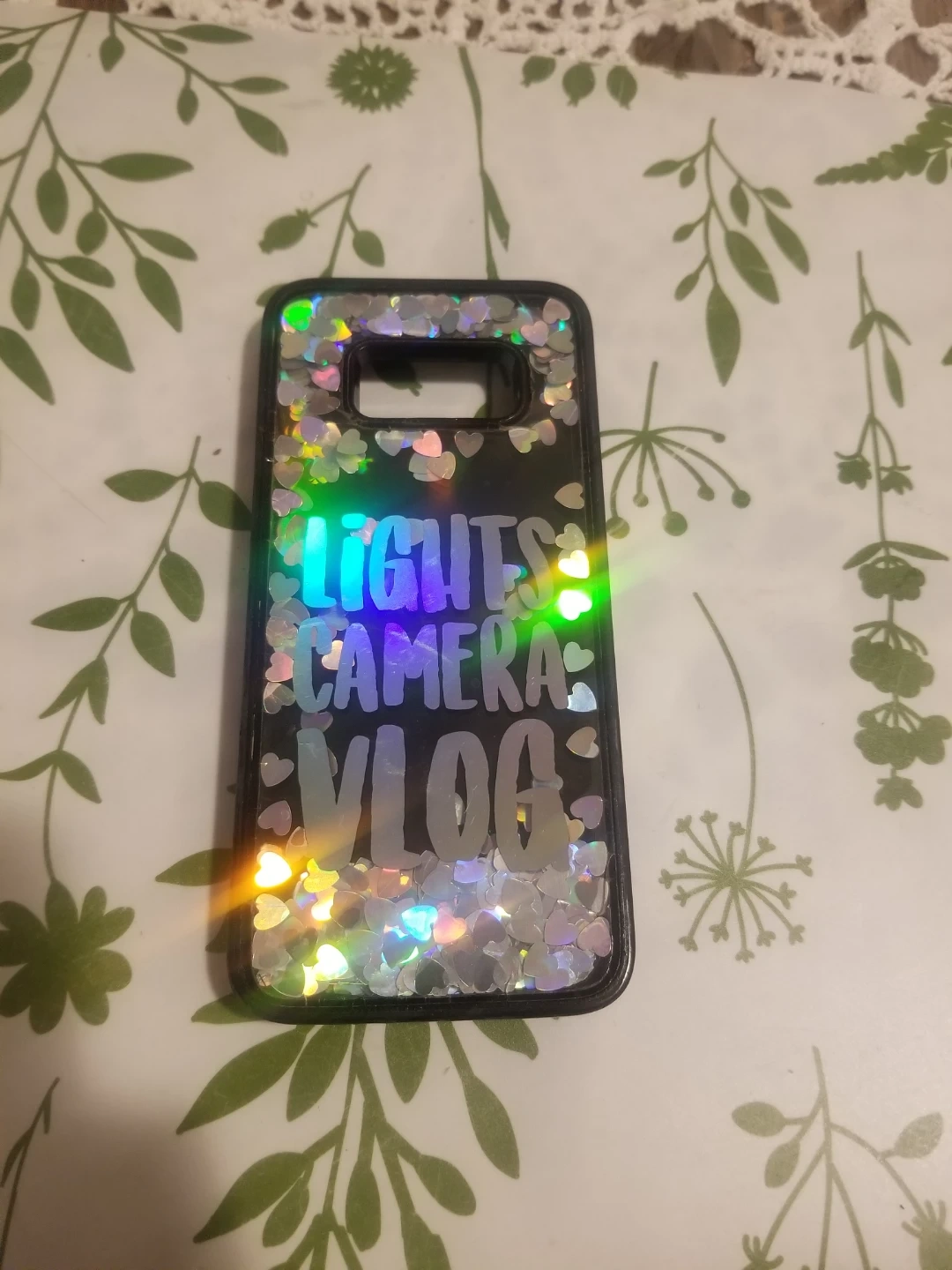 COMPLETELY FREE Used black phone case. It has some wear and tear, as you can see in the pictures. It has a design that says "LIGHTS CAMERA VLOG". If Interested Please let me know Thank you Giving Away for Free 😊 For Samsung Phone