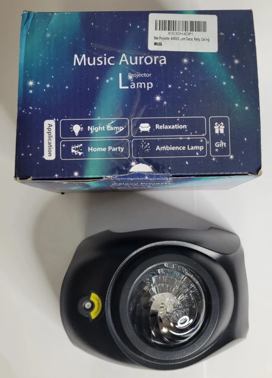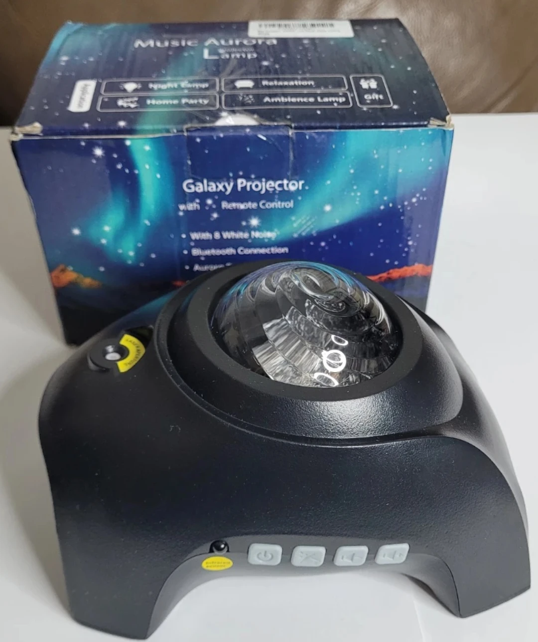 Selling a Music Aurora Galaxy Projector Lamp! It comes with a remote control and also features white noise and Bluetooth connection. It's perfect for creating a relaxing ambiance or for home parties. The box is included!