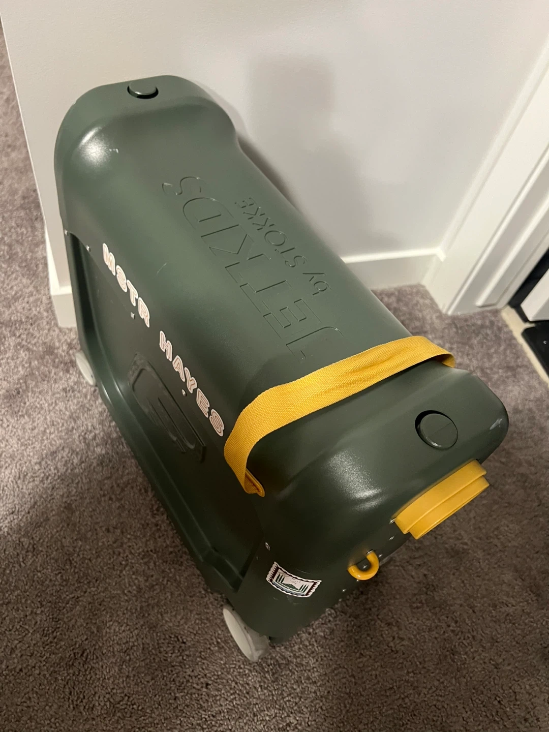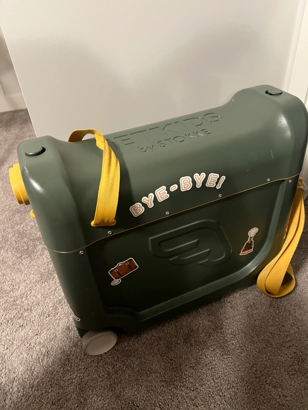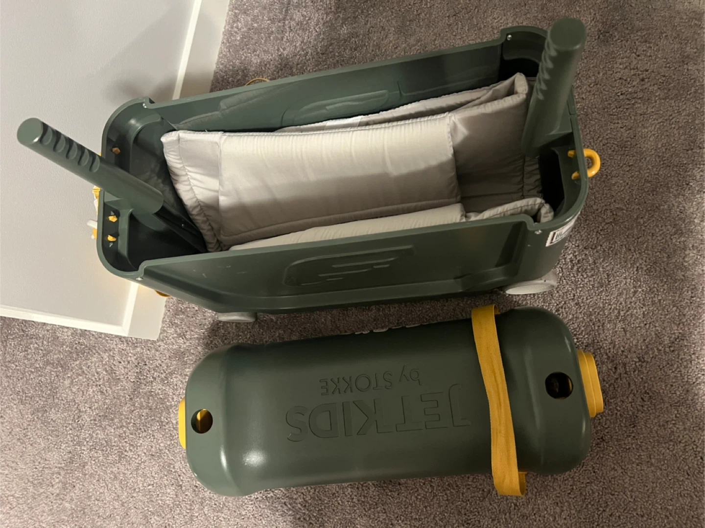 Selling a Stokke JetKids BedBox suitcase in green! It's in great condition and ready for your little one's next adventure. This clever suitcase transforms into a bed for comfy travels. Includes the original mattress and side panels.