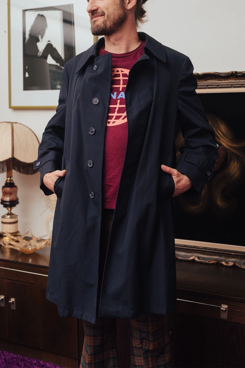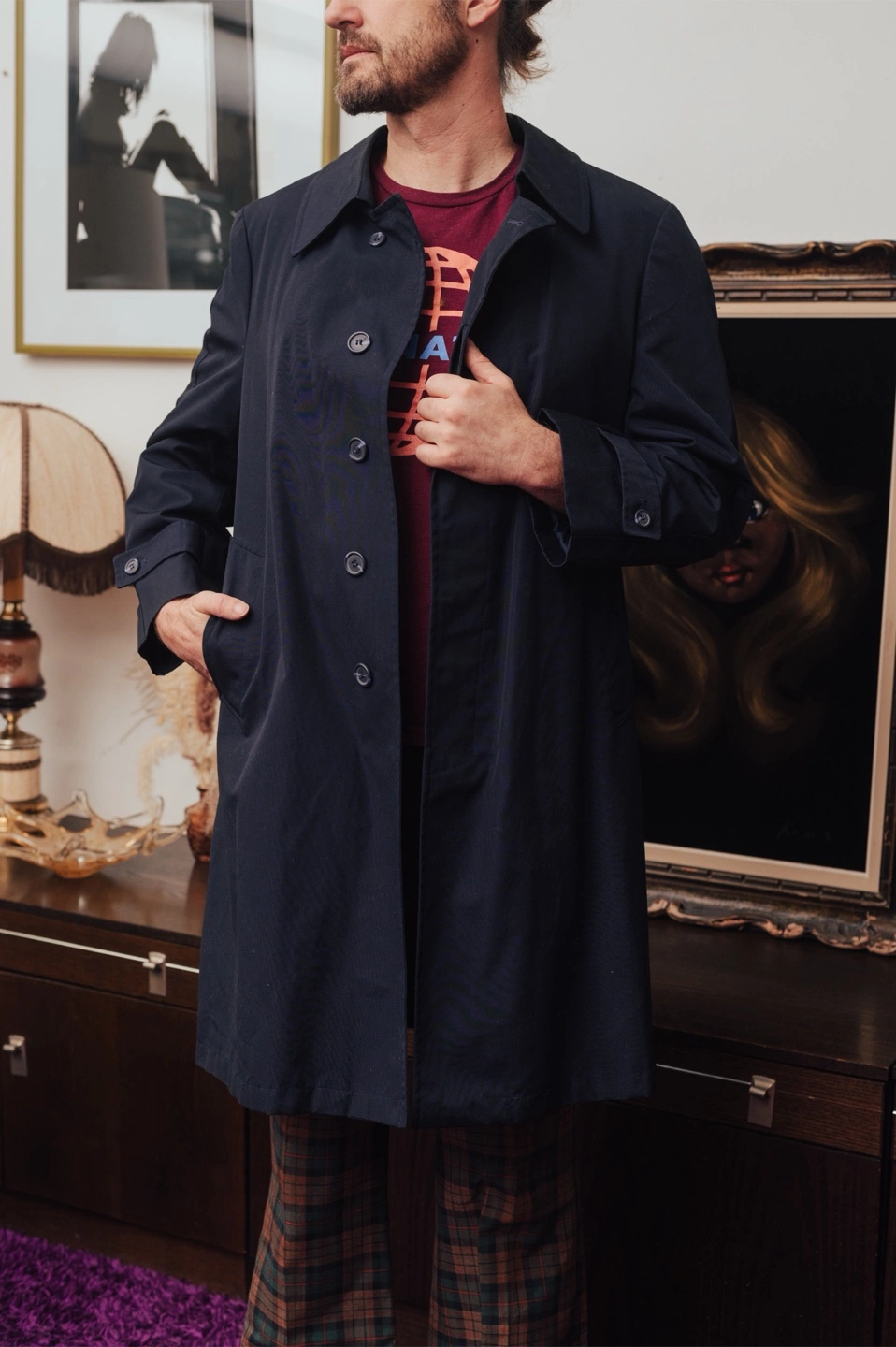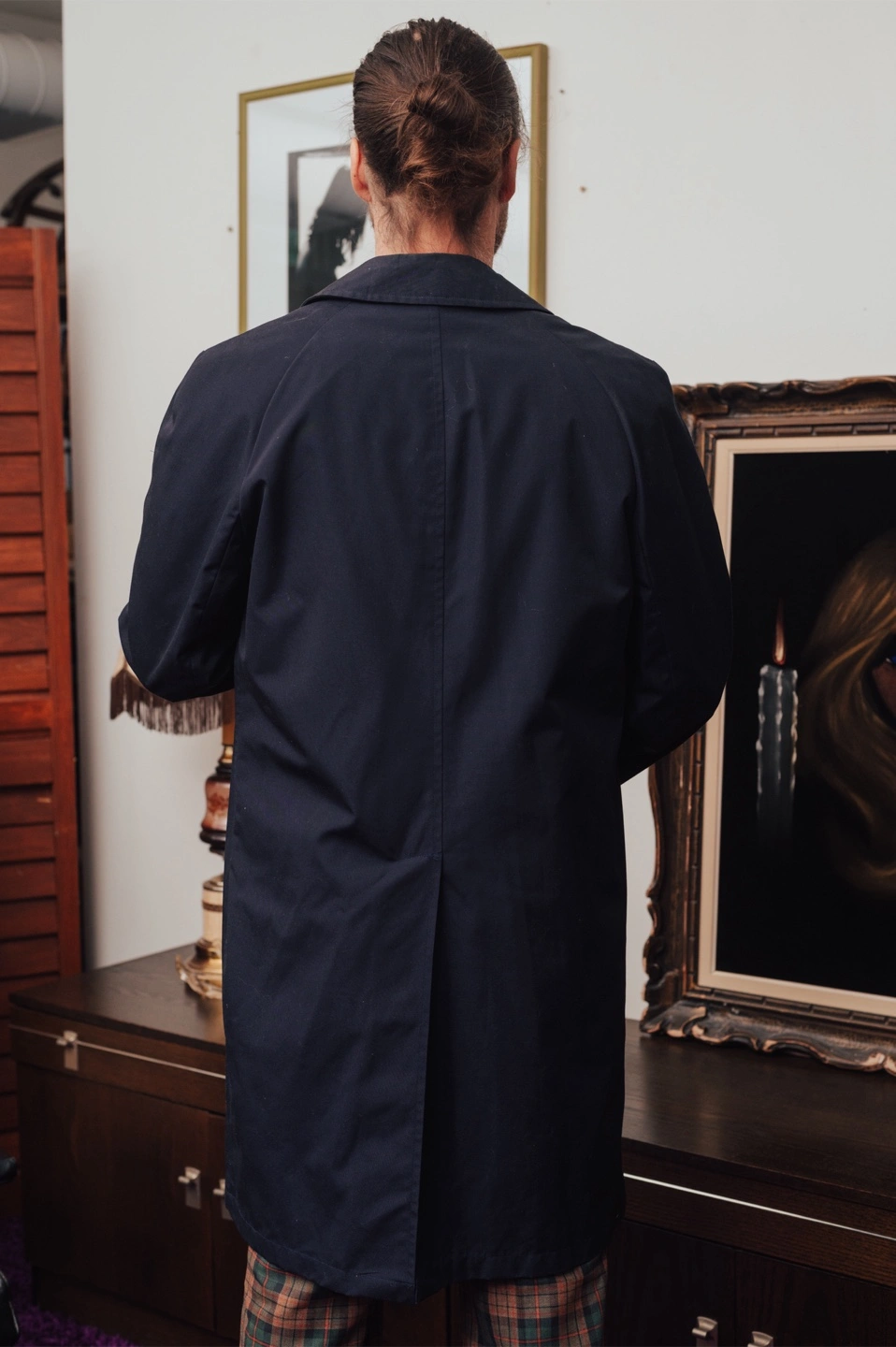 Vintage Navy Trench Coat w/ Plaid Lining – Men’s M/L