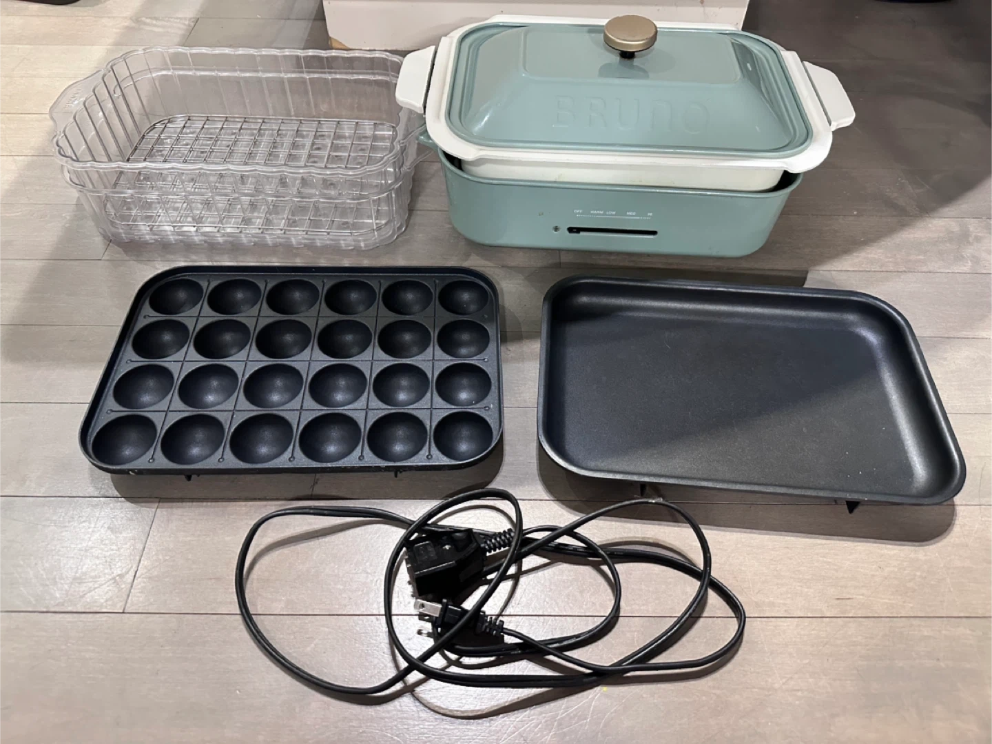 Selling a Bruno hot plate in great condition! It comes with the deep dish plate, takoyaki plate, grill plate, steaming rack, lid and power cord. It's perfect for making takoyaki, pancakes, hotpot, or grilling meat and veggies. Can see wear and tear but everything is working perfectly fine. pick up only.