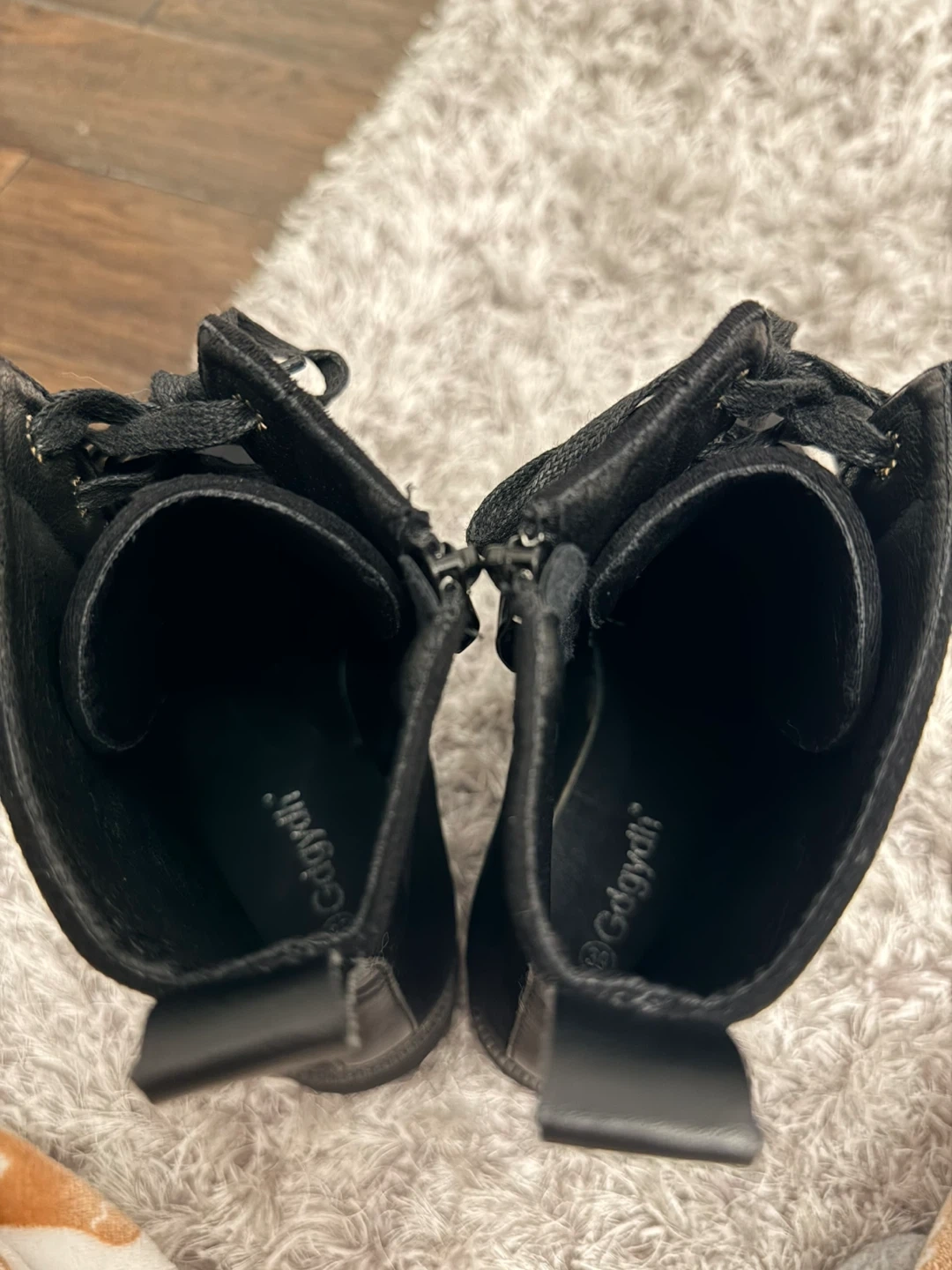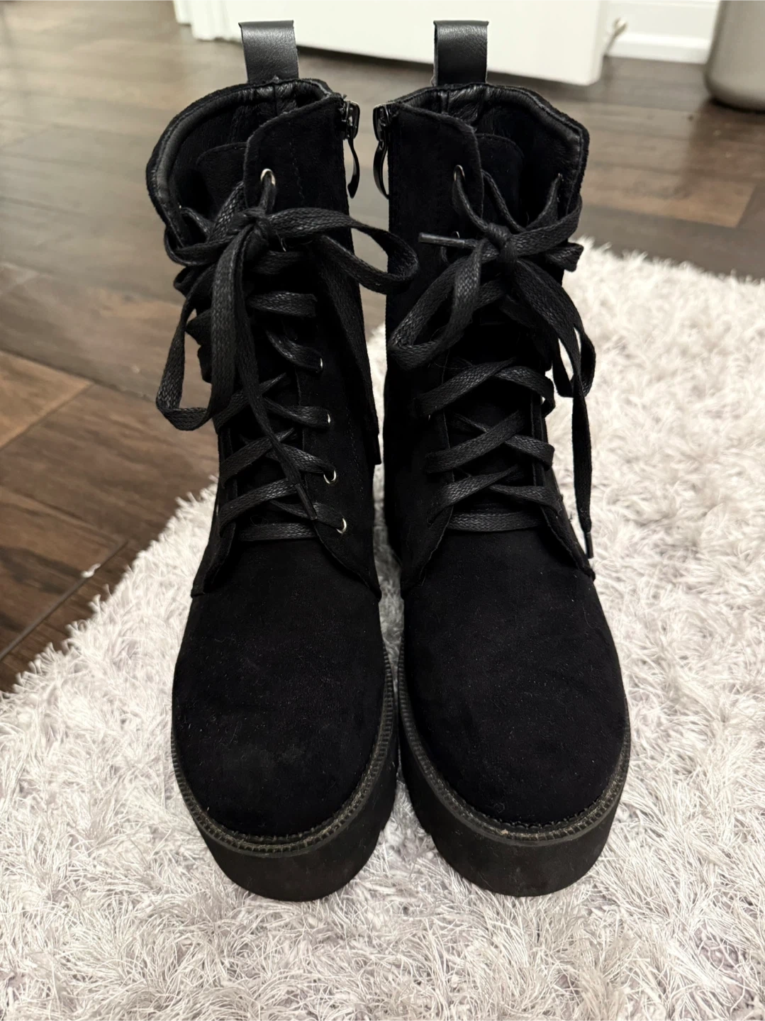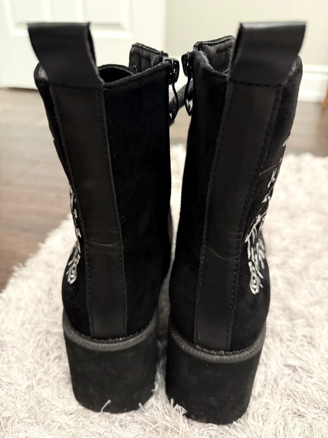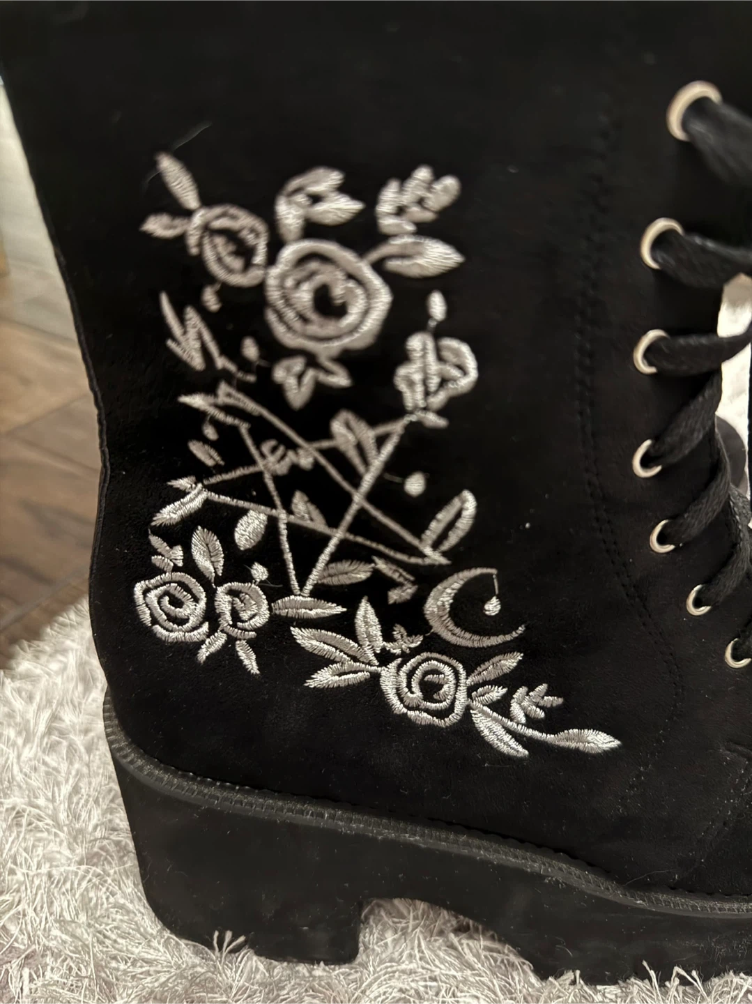 Black Lace-Up Platform Boots with Embroidery size 8