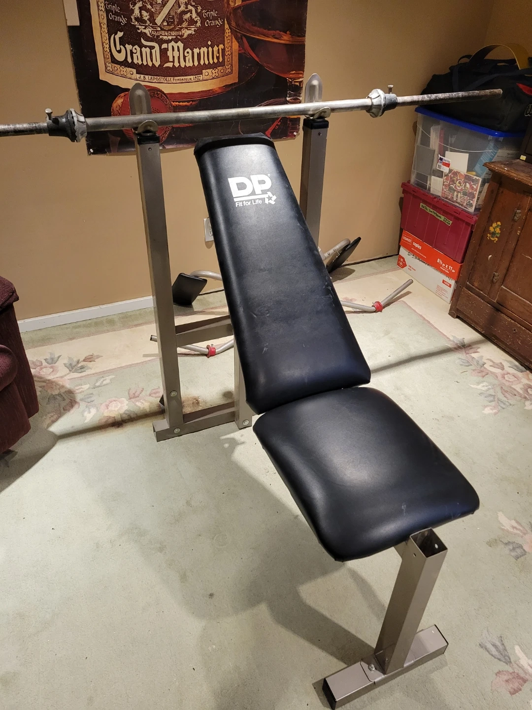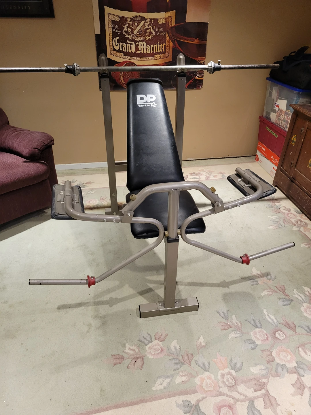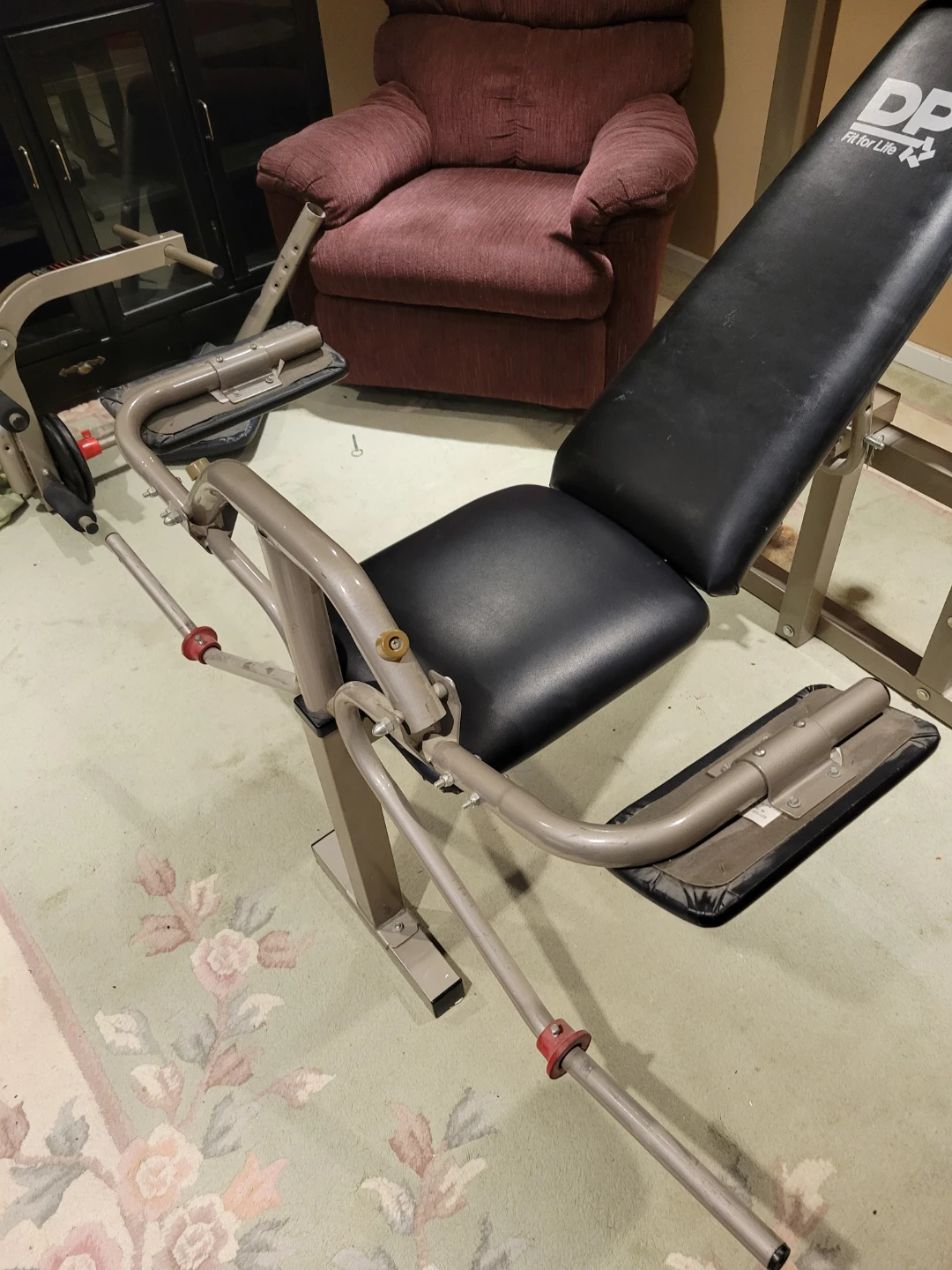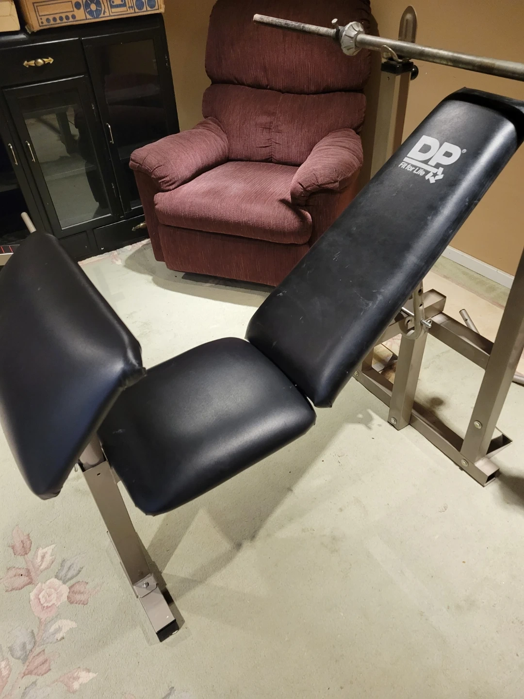 Selling a DP Fit for Life weight bench. It's in good condition and ready for your home gym! Perfect for various exercises and strength training. Attachments for curls, flys, and leg work. 2 inch square tubing. Quality bench purchased at Sears. Bar included.