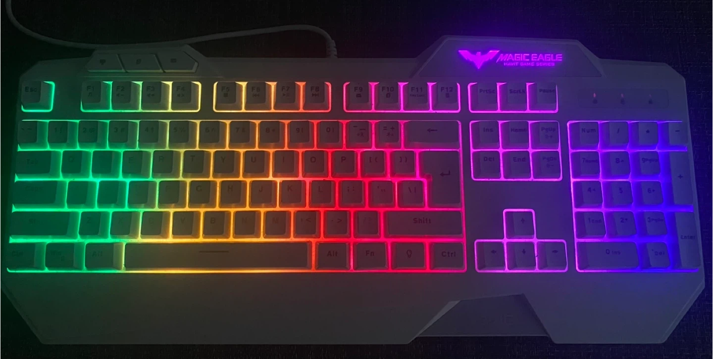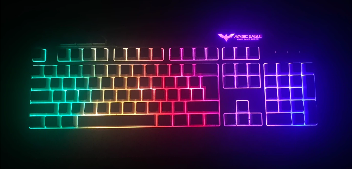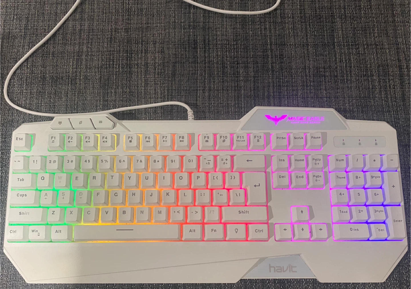Selling a Magic Eagle HAVIT HV-KB558 gaming keyboard. It has a cool rainbow backlight feature that looks great in the dark. The keyboard is in great condition, like new.