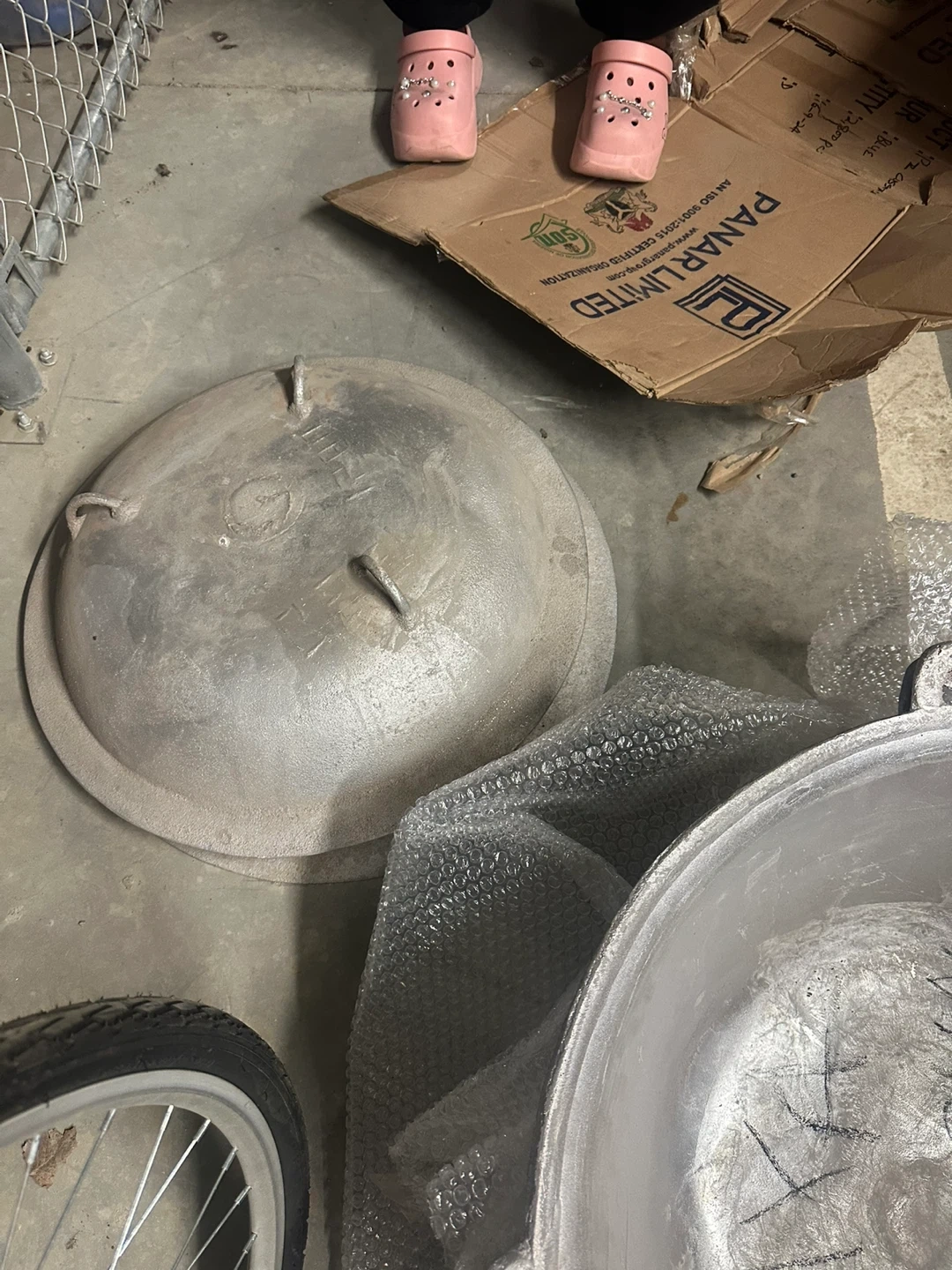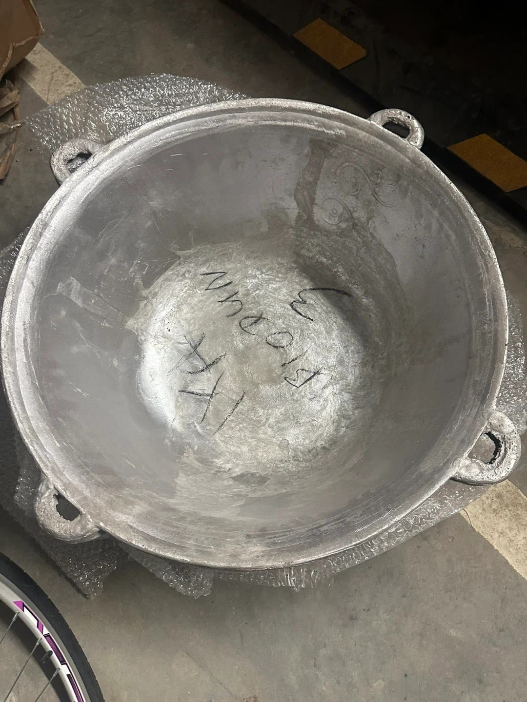 Selling a large aluminum cooking pot, perfect for big batches of your favourite recipes! It has sturdy handles and a wide, deep design. Great for stews, soups, or even outdoor cooking. It's in good condition and ready for a new kitchen!