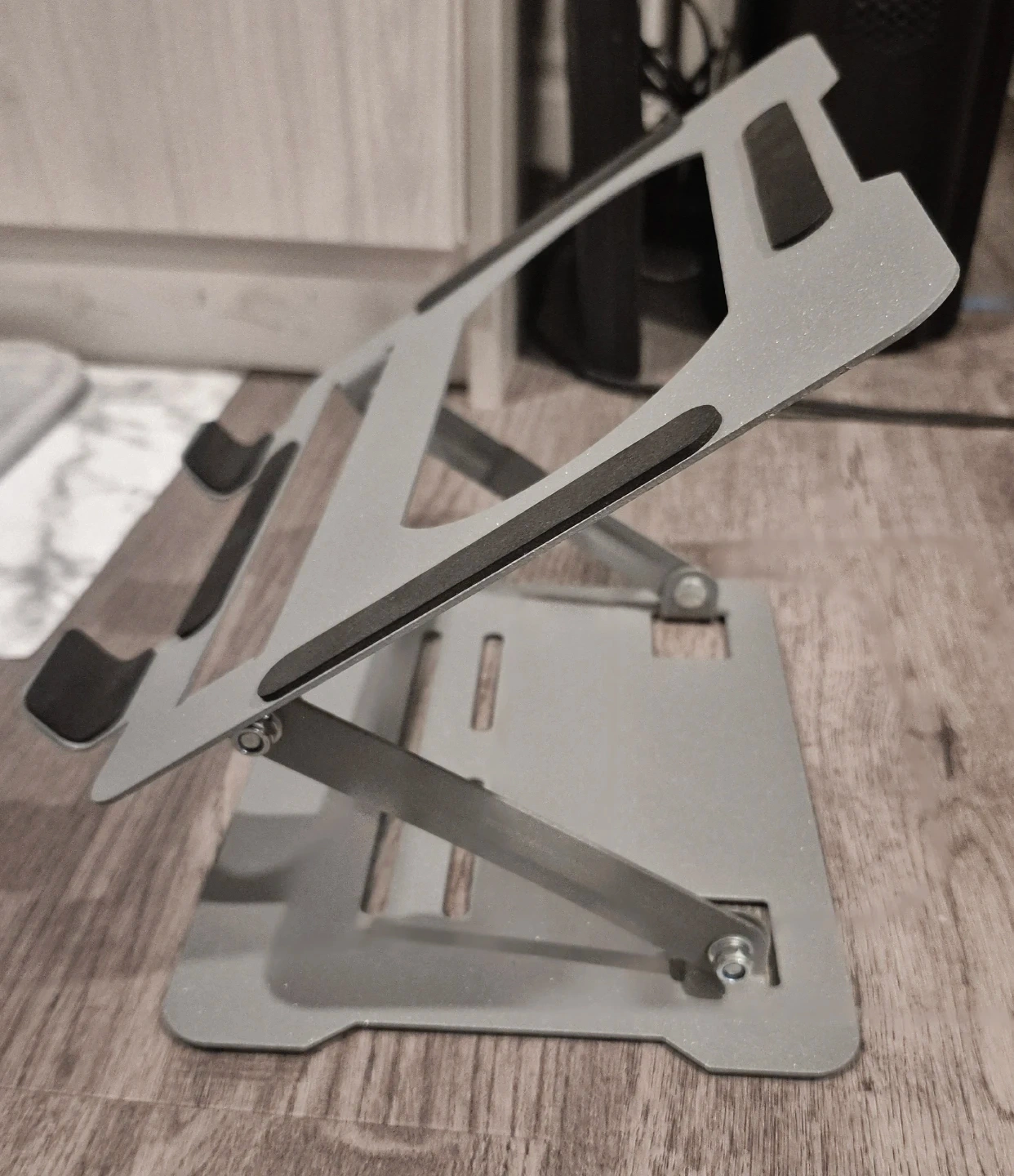 This adjustable aluminum laptop stand is perfect for elevating your laptop for better ergonomics! It's lightweight and portable, so you can easily take it with you wherever you go.
