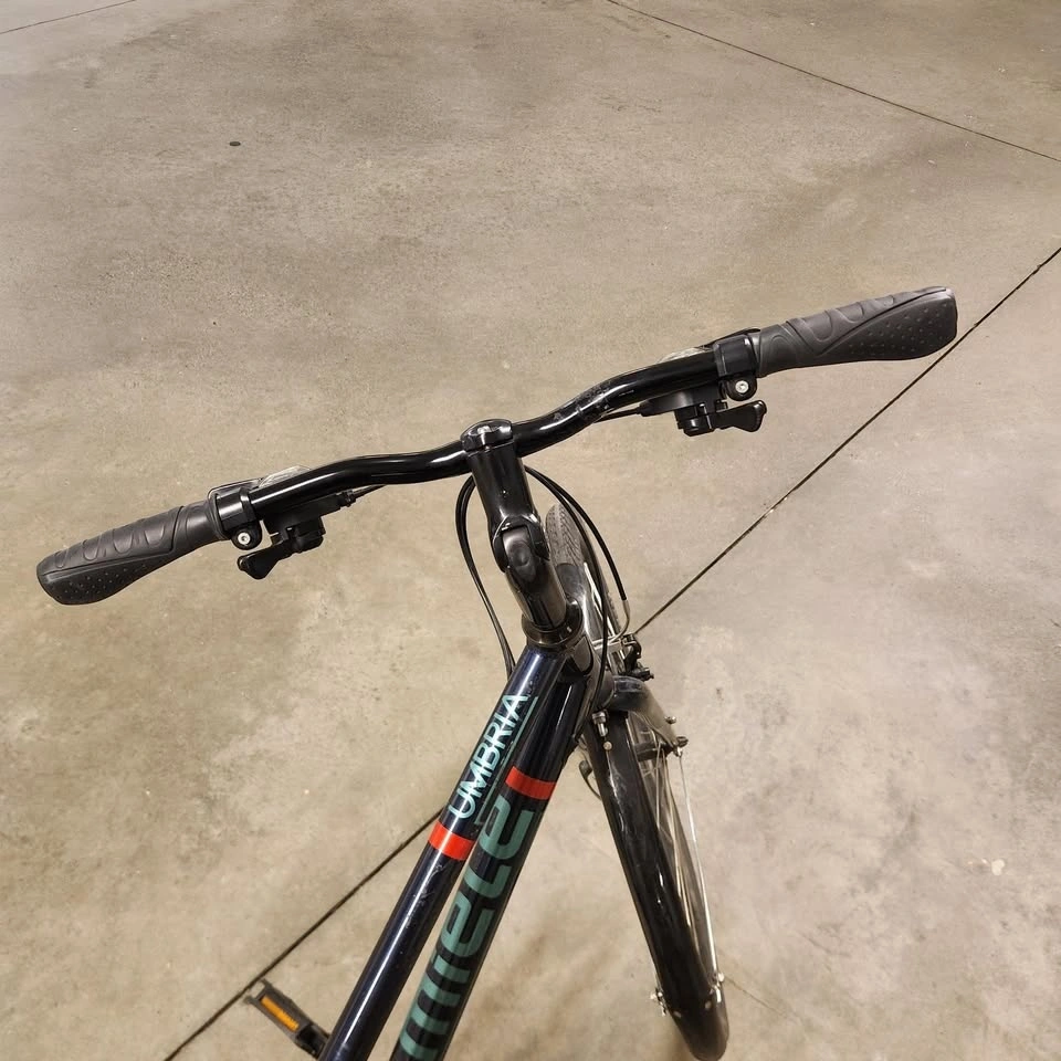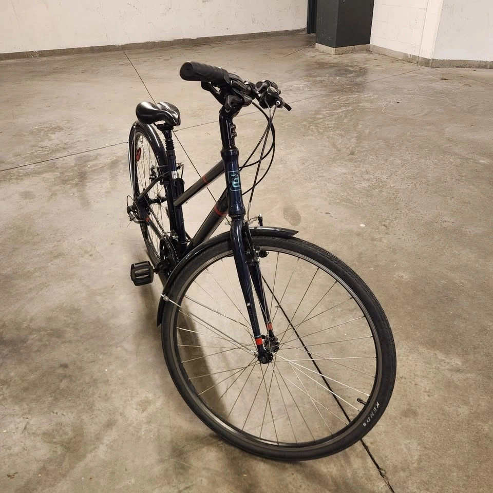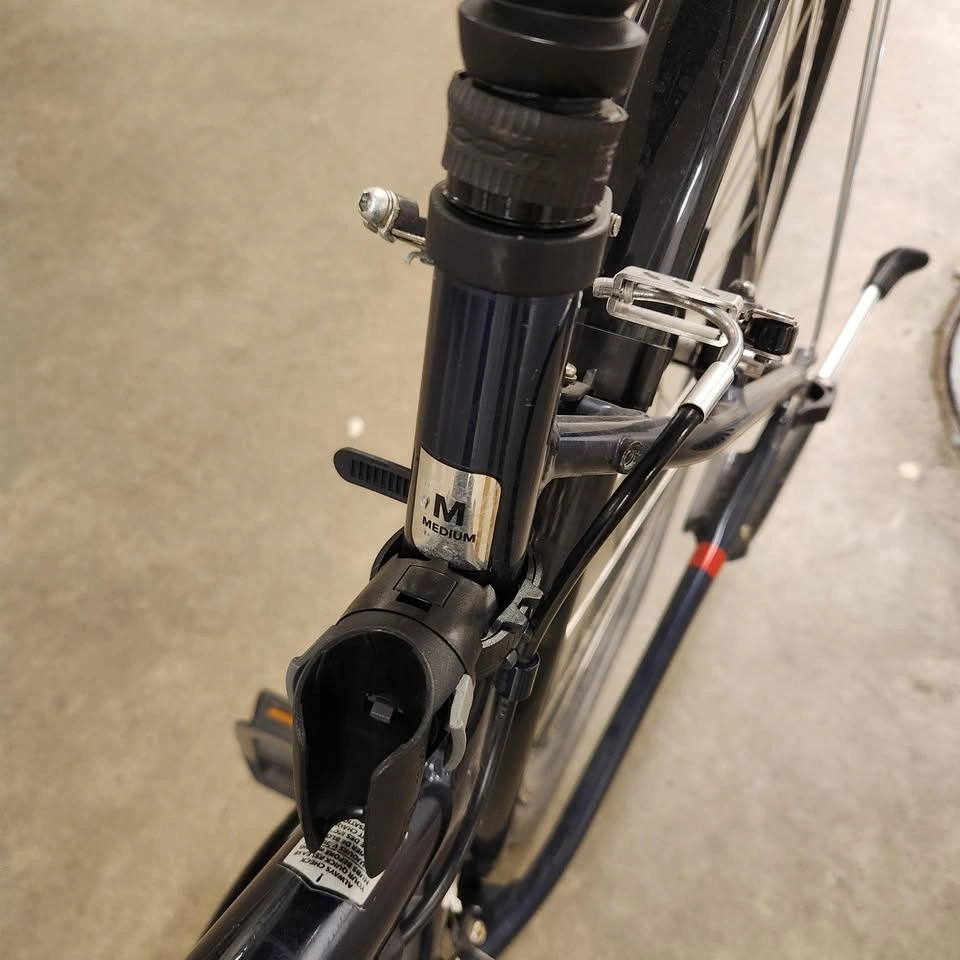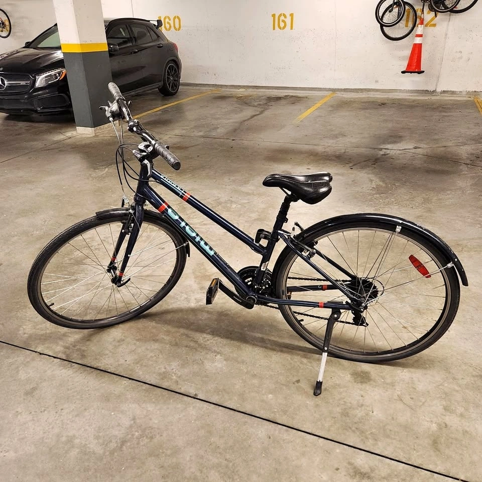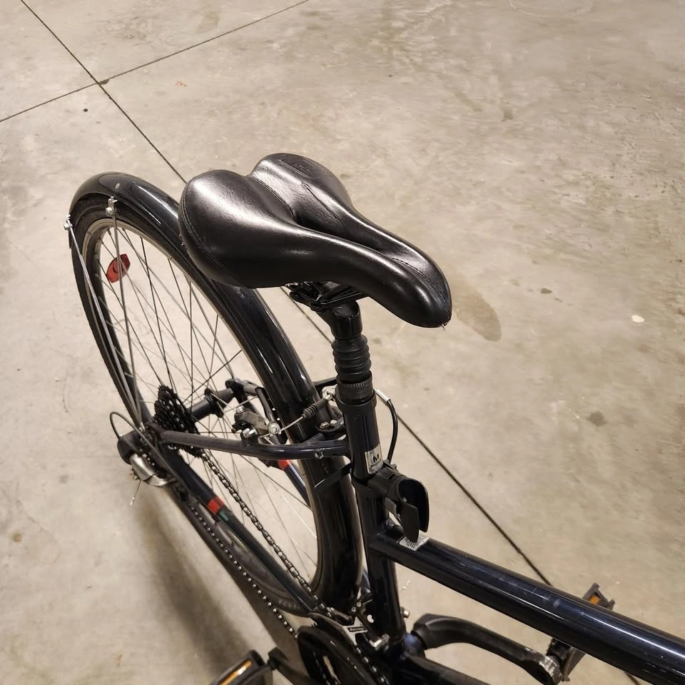 This bike is in good working condition. Nice city bike for cruising. Seat is lowered here but can be adjusted.