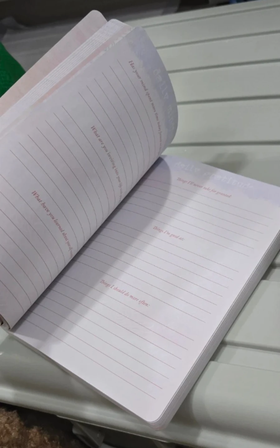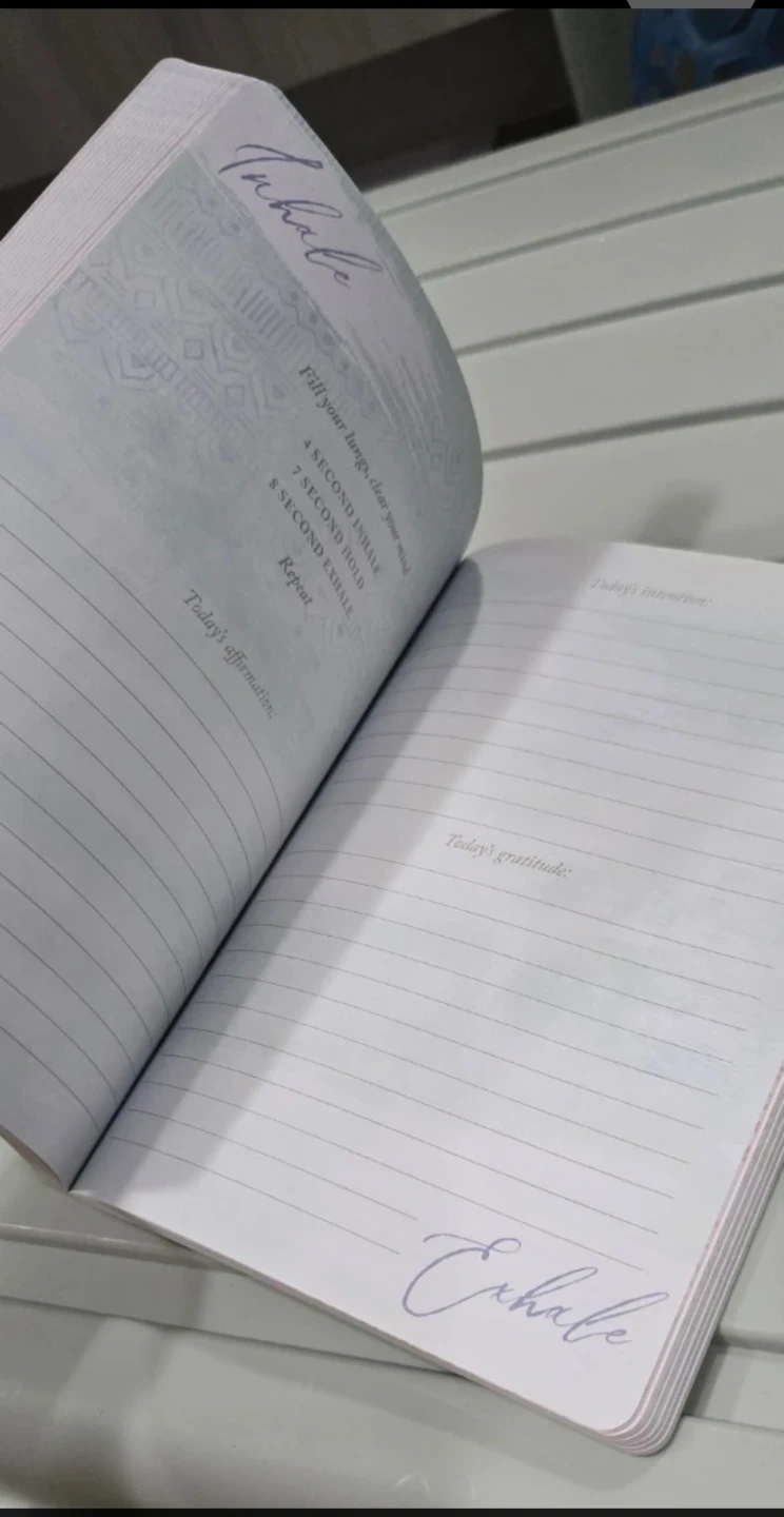 It has prompts like 'Today's affirmation', 'Today's gratitude', and 'Today's intention'.