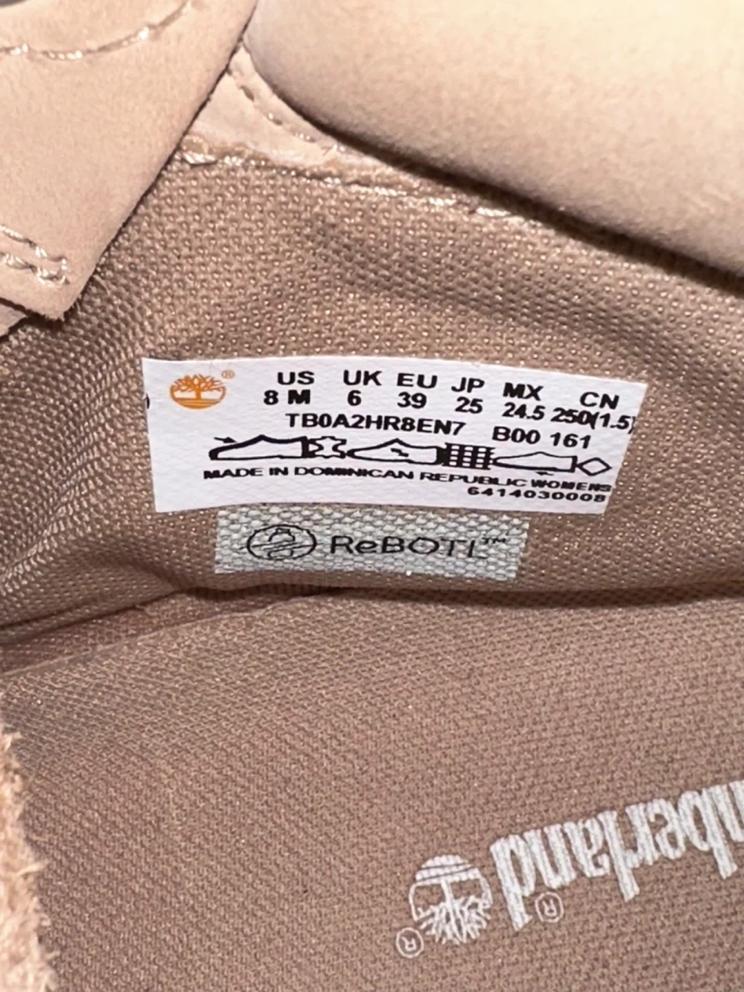 Selling a pair of Timberland women's boots in size 8M. These boots feature ReBOTL material, making them an eco-conscious choice. They are a stylish and durable option for everyday wear!