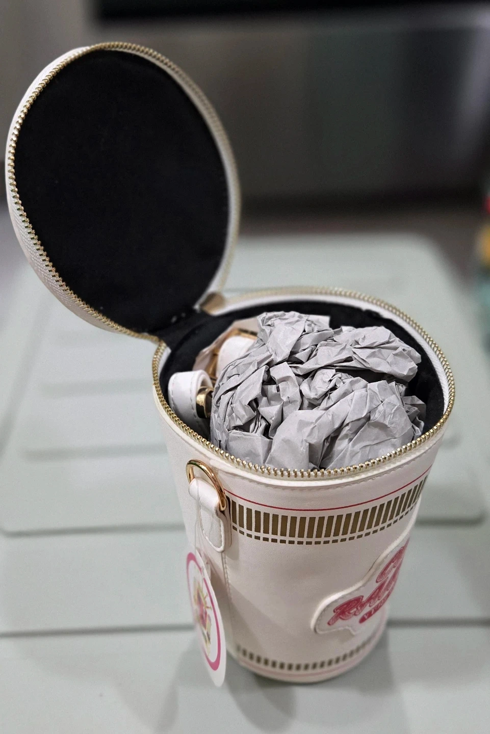 Super cute and unique Ramen Noodle Cup Crossbody bag!