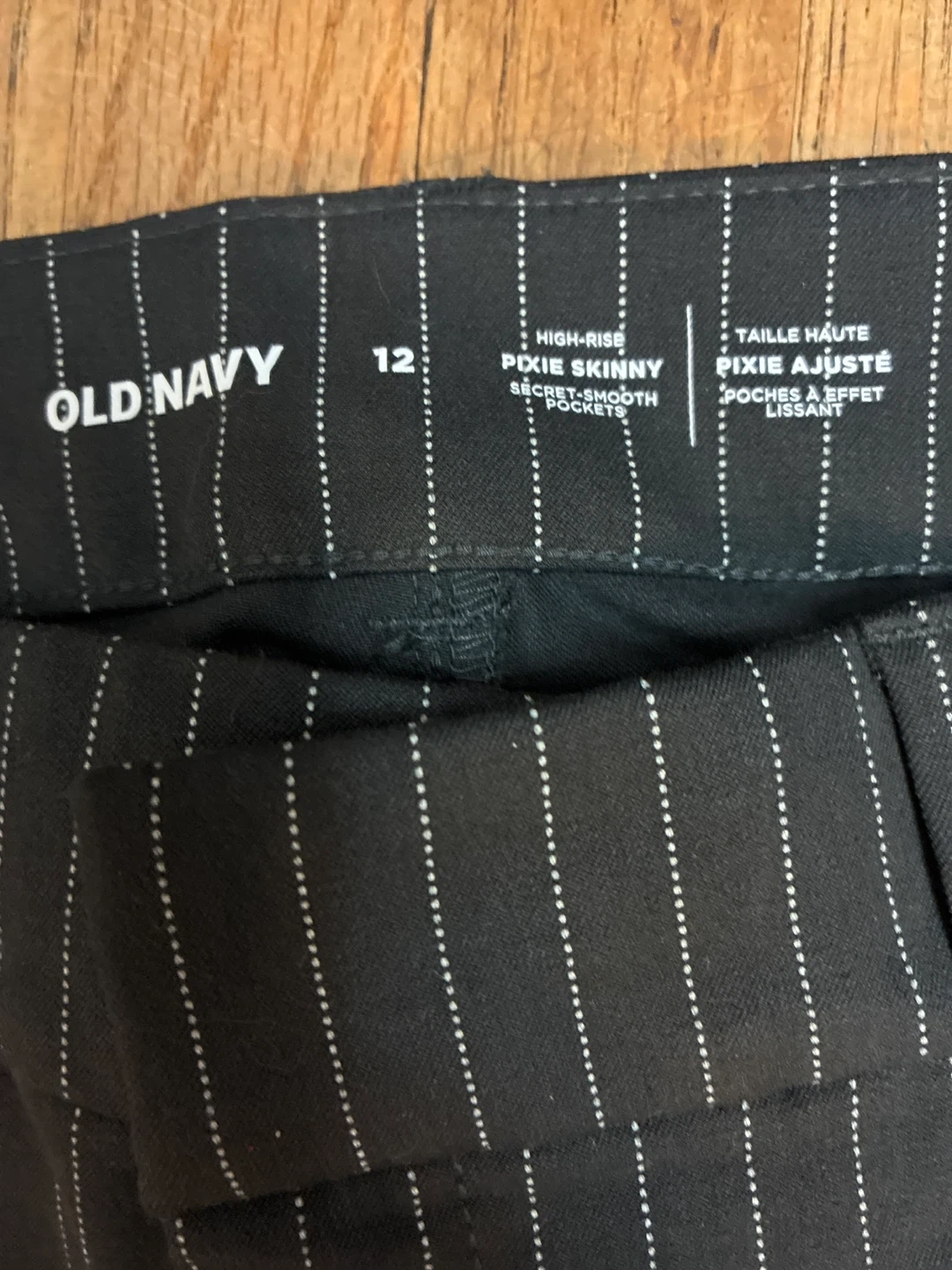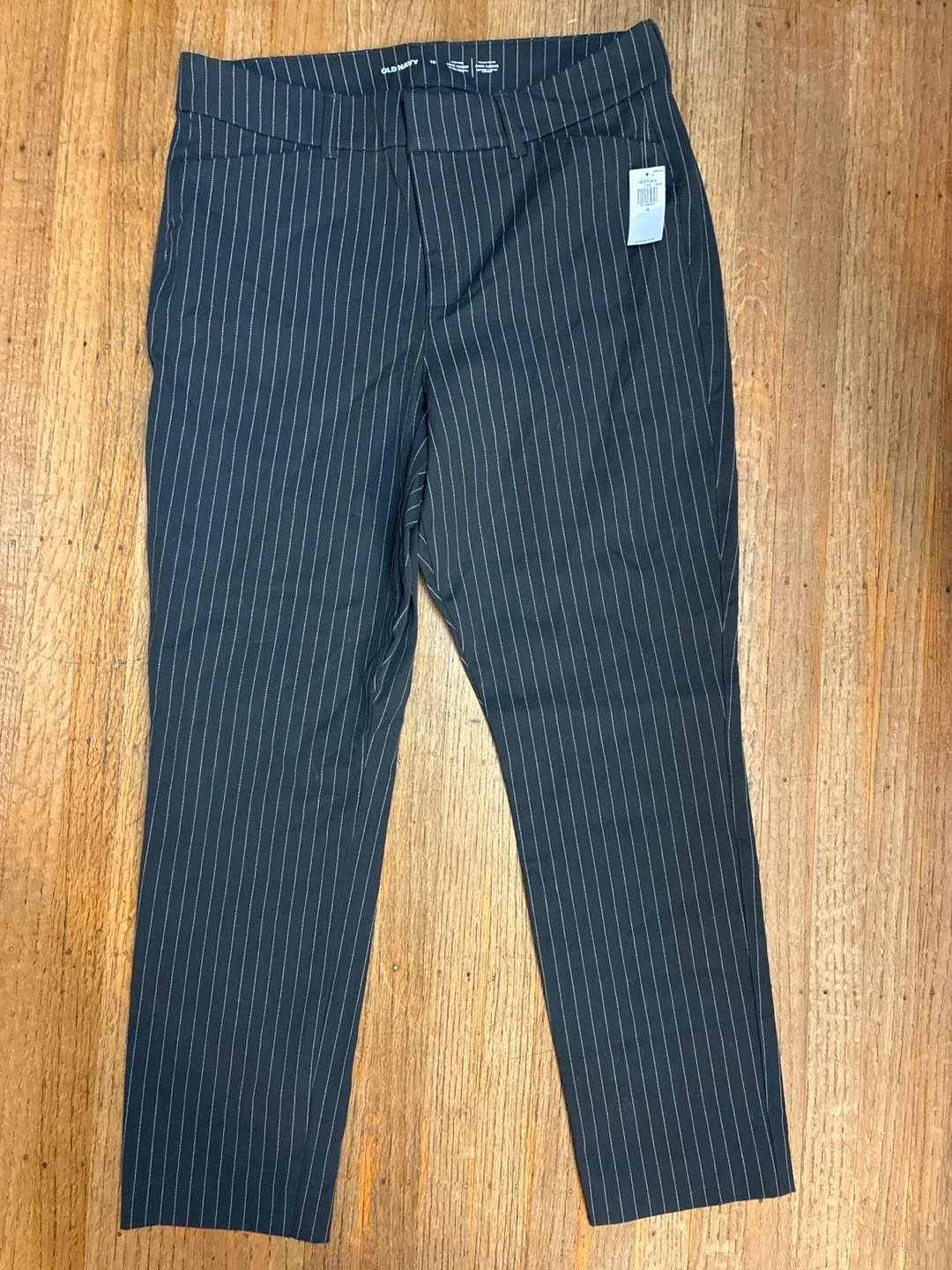 I'm selling a brand new pair of Old Navy Pixie Skinny pants! These are a size 12 and feature a stylish pinstripe design. They have a high-rise waist and a secret-smooth pocket. Perfect for work or a night out