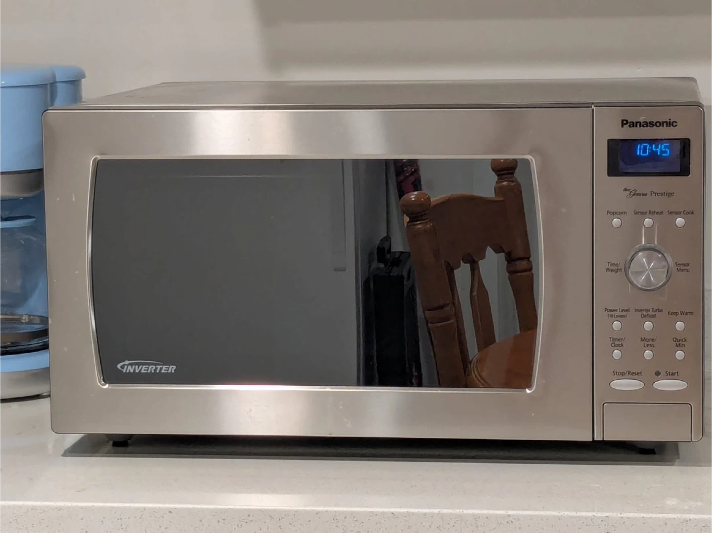 Selling a Panasonic Genius Prestige Inverter microwave! It's in great shape and ready to heat up your meals. Features include settings for popcorn, sensor reheat, and sensor cook. It also has an inverter turbo defrost function for quick and easy thawing