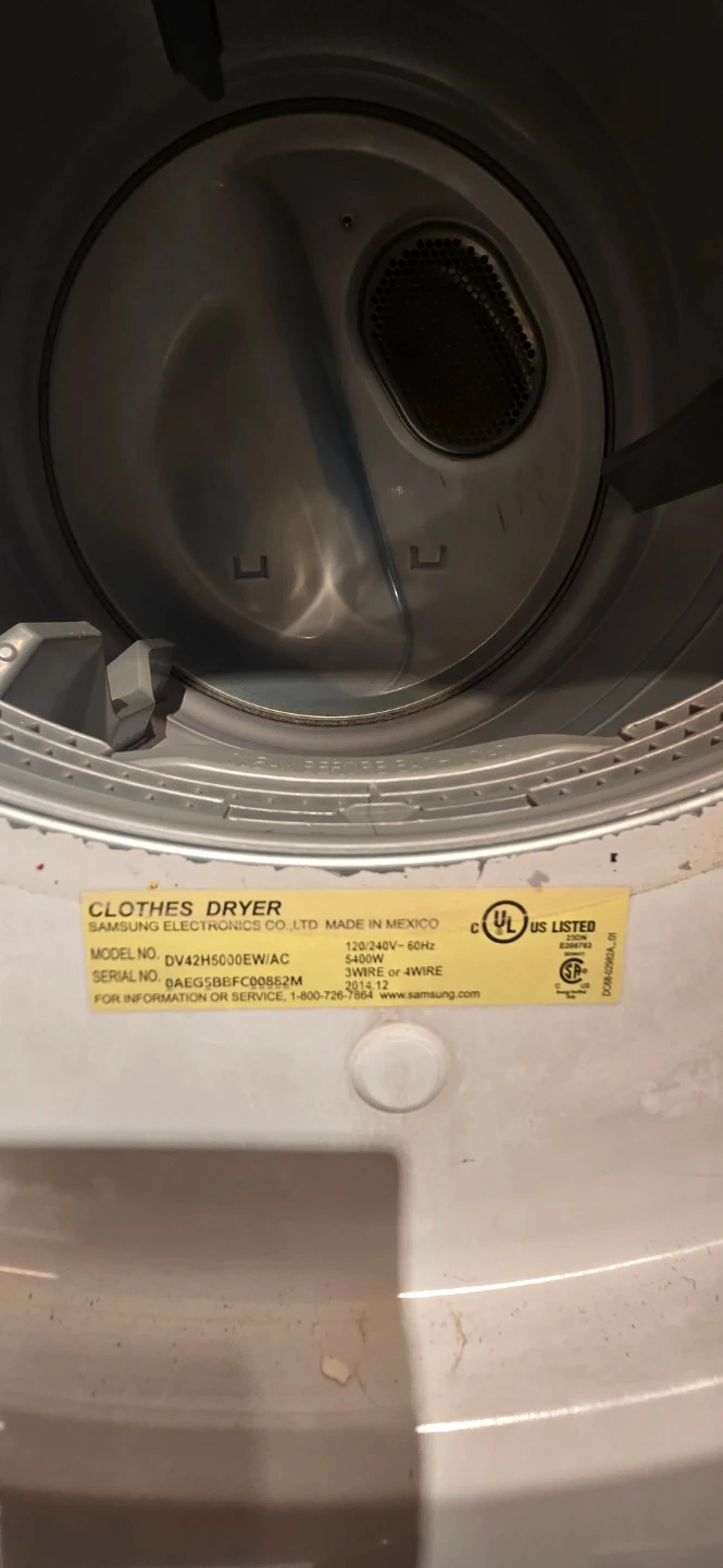 Dryer model: Samsung DV42H5000EW/AC