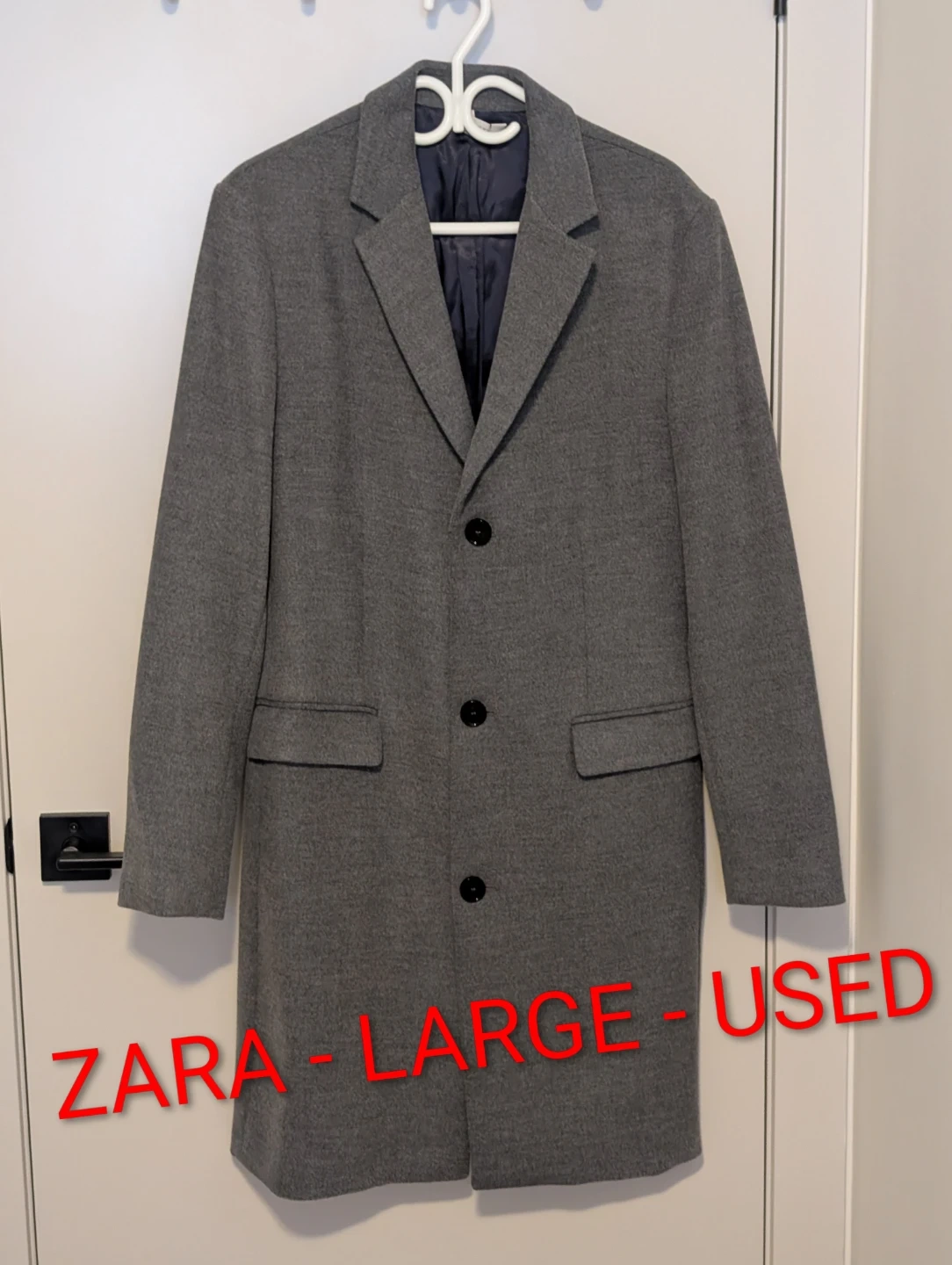 Selling a Zara overcoat in size large. It's a stylish grey colour, perfect for layering during the cooler months.