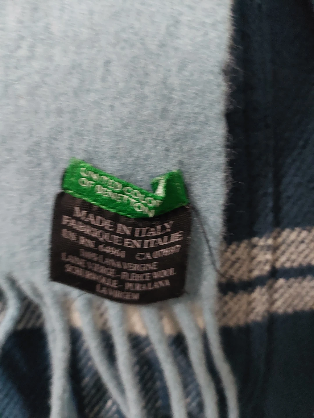 Here's a beautiful light blue scarf from United Colors of Benetton! It's made in Italy from 100% wool. Perfect for adding a touch of colour and warmth to your outfit