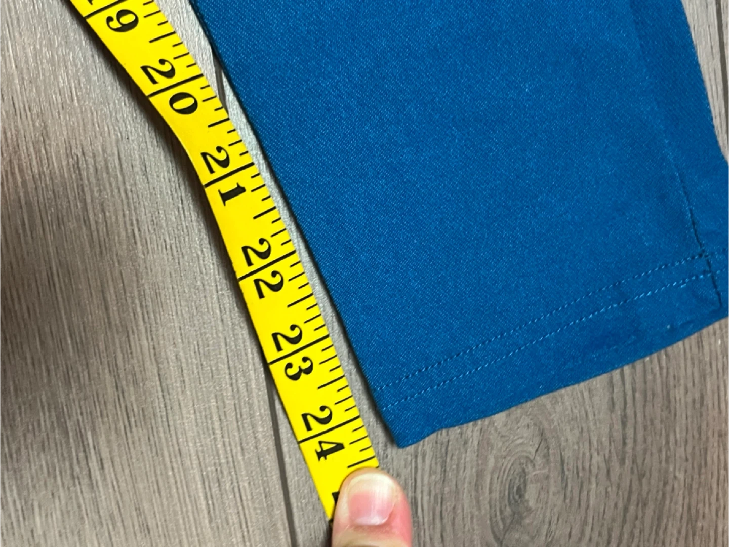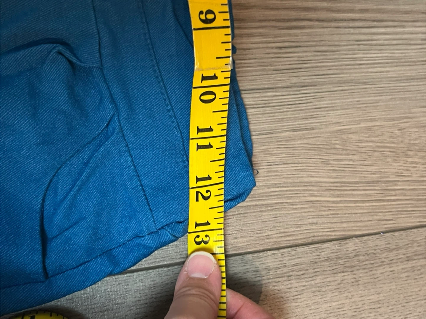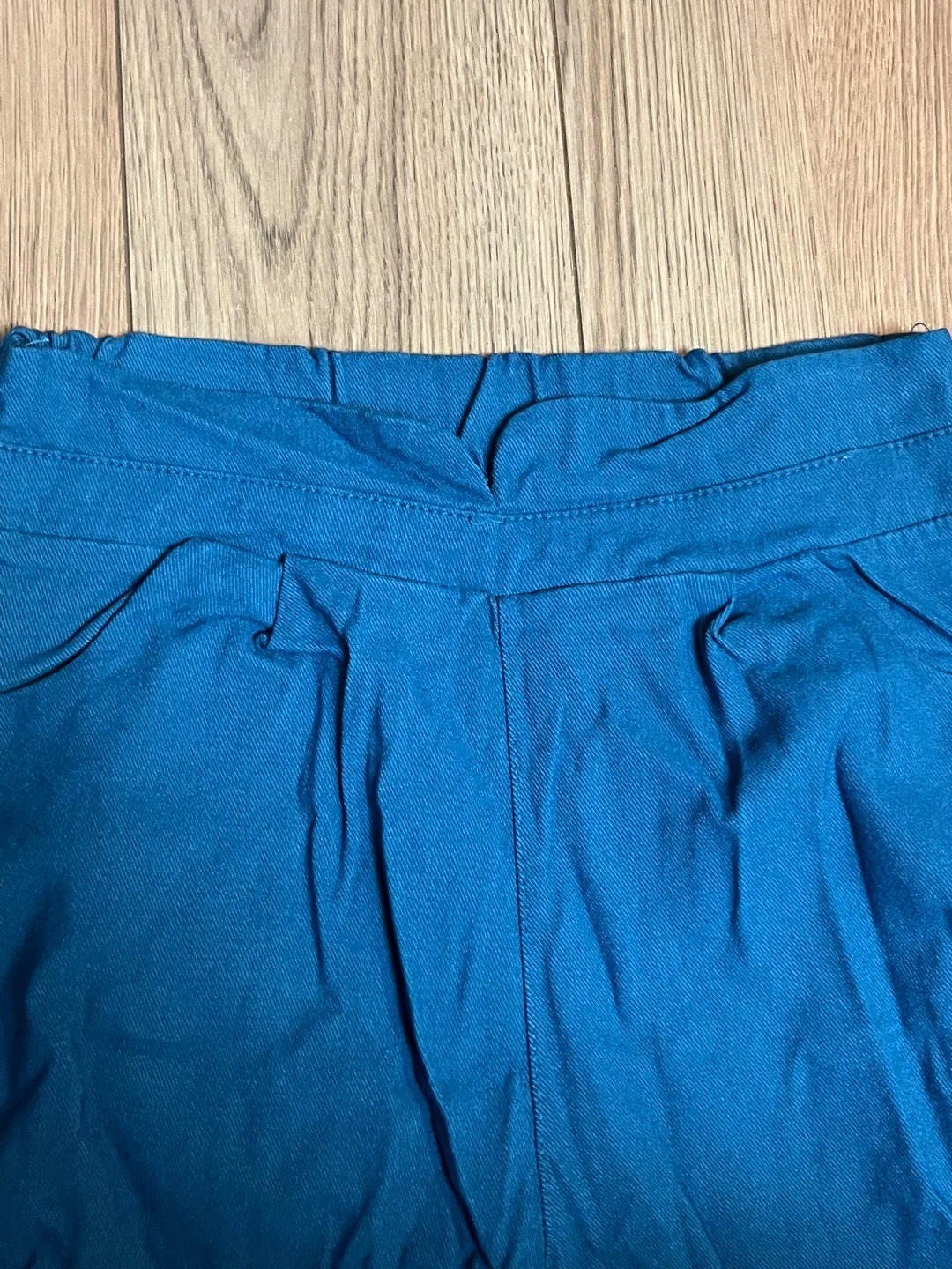 Selling a pair of blue pants. The waist measures approximately 12 inches when laid flat, and the length is about 24 inches. They are in great condition!