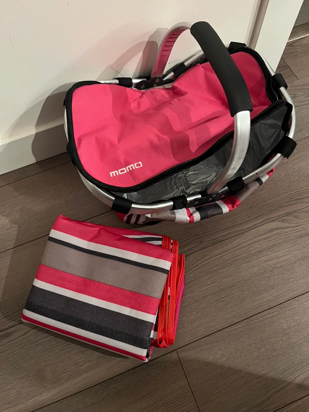 Selling a Momo insulated picnic basket with a matching blanket. It's perfect for picnics in the park or outdoor gatherings. The basket is in great condition and ready for your next adventure!