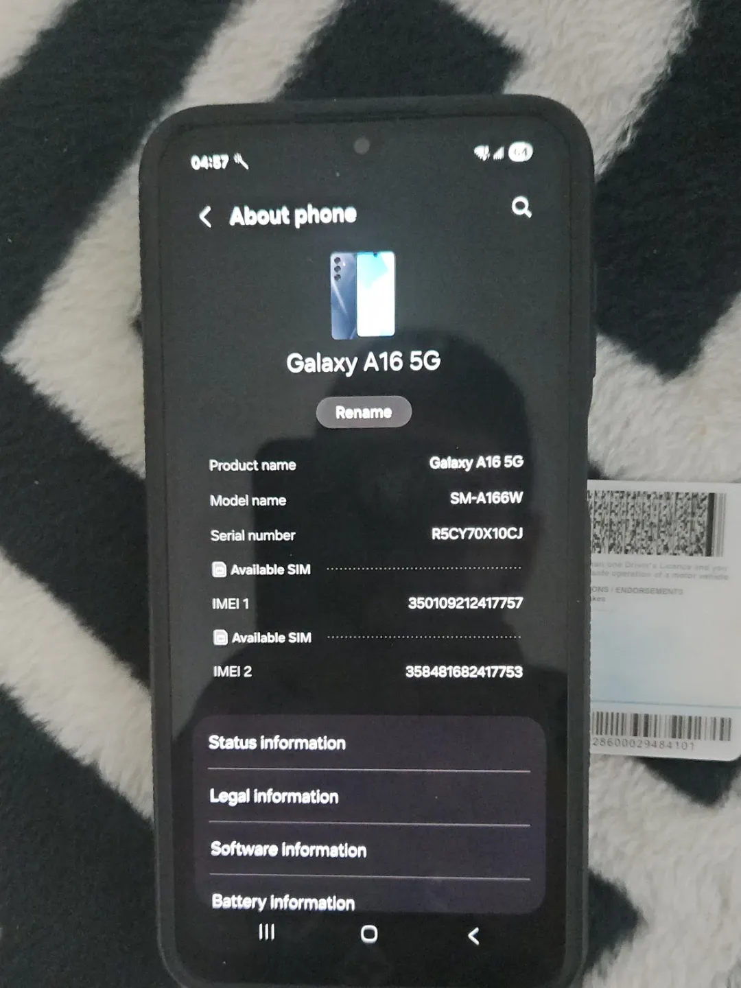 Selling a Samsung Galaxy A16 5G, model number SM-A166W. The Android version is 16, and the One UI version is 8.0. There is one Crack on the screen it does not effect anything won't effect the day to day usages ect.