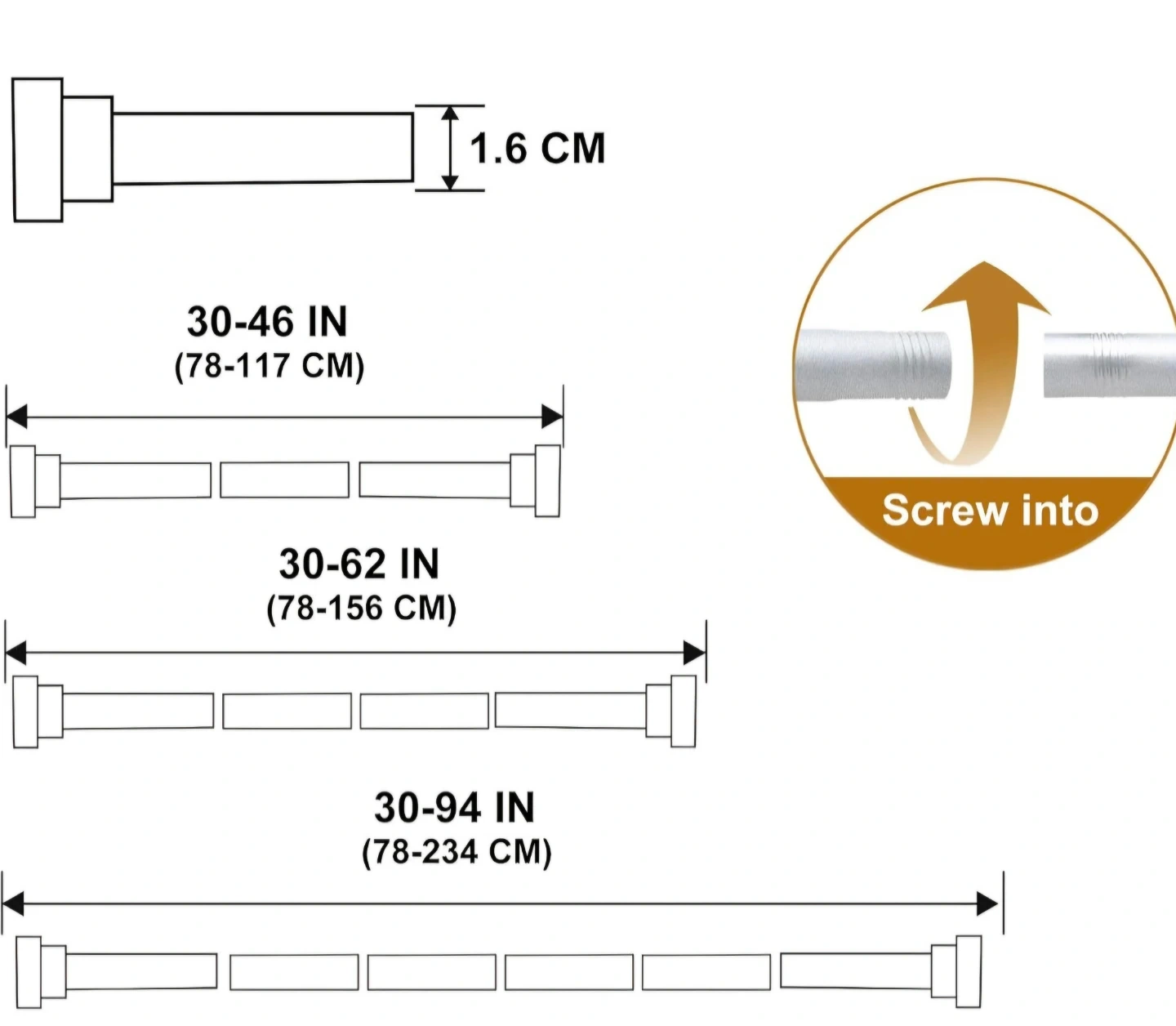 - Dimensions30"-94"