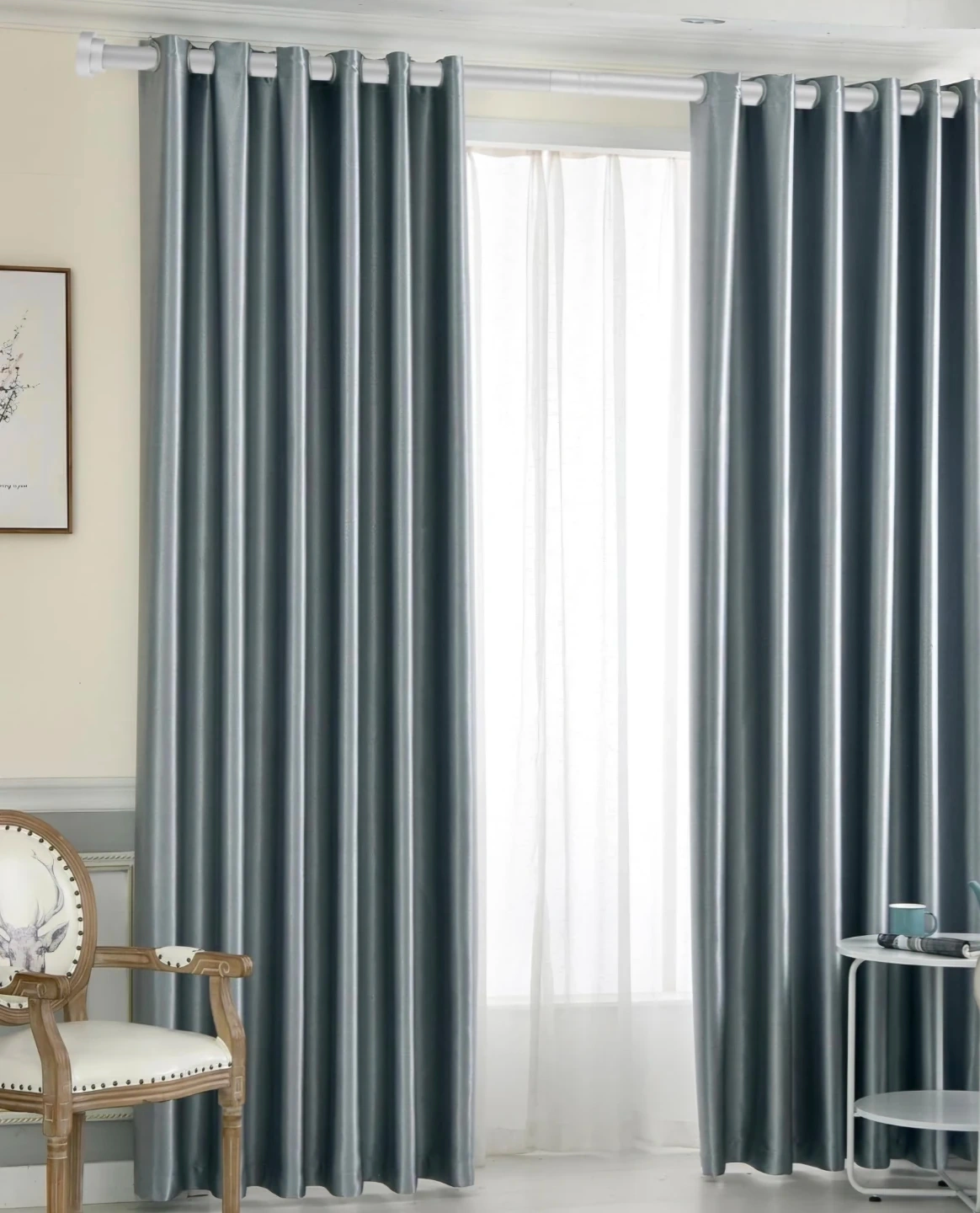 Silver Curtain Rod Set Adjustable 30"-94" 5/8 Diameters