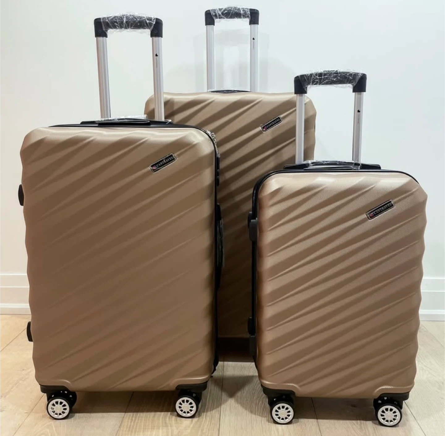 Brand New Gold Luggage Set - 3 Piece (20”/24”/28”). It includes three different sizes to suit all your travel needs. The set is still in its original box, ensuring it's in perfect condition for your next adventure!