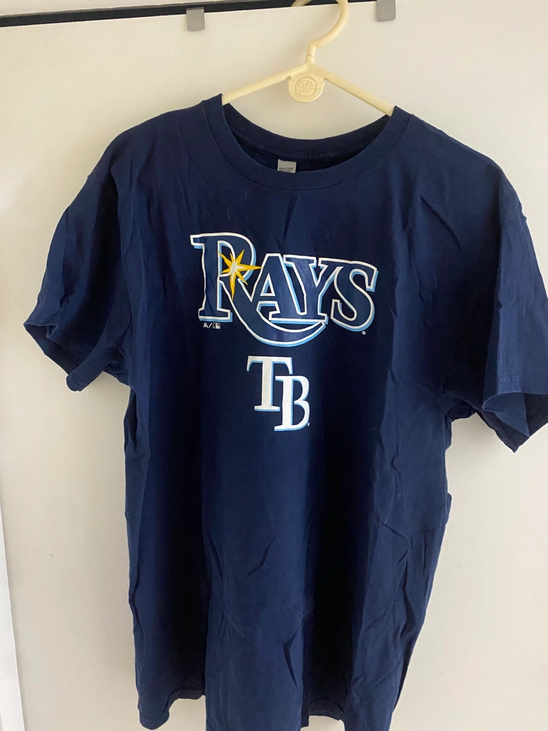 Buy & SellTampa Bay Rays MLB T-shirt - Size LTampa Bay Rays MLB T-shirt - Size L$5Selling a Tampa Bay Rays MLB T-shirt in size Large. The shirt is navy blue and made of 100% cottonConditionLike newSizeLBrandMLBWHERE TO MEETCheck LocationView MapSELLERverifiedCorLongwood972 reviews0 chats·0 favorites·1 viewsSEND CHAT TO SELLERHi Cor! I’m interested in your listing.Hi Cor! I’m interested in your listing.Get the Karrot app to chatSign In to chat