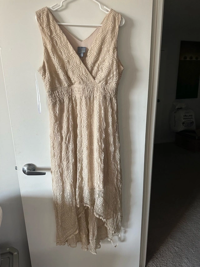 This is a Rabbit Rabbit Rabbit Designs size 16 dress, featuring a flattering v-neckline and a stylish hi-low hem. This garment has only been worn a handful of times and is in excellent condition, ready to elevate your wardrobe. Specifications: * Brand: Rabbit Rabbit Rabbit Designs * Size: 16 * Style: Hi-Low While I can't guarantee it'll bring you luck, finding this ad means you're in for a treat! Just a heads-up: if the ad's still up, it's still up for grabs! From smoke and pet free home. $40 Pick up downtown