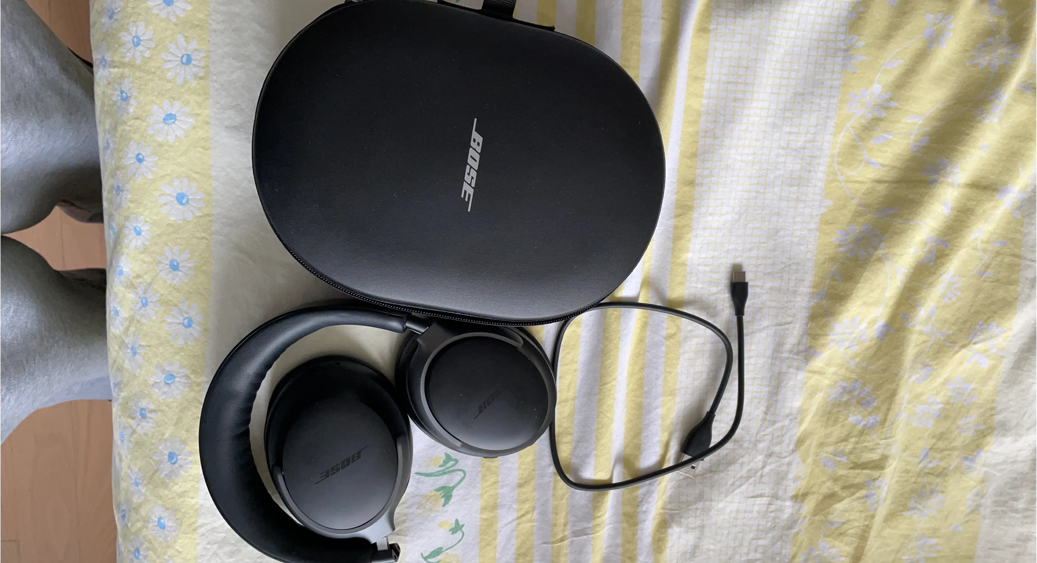 Selling a pair of Bose noise-cancelling headphones in brand nee condition! Comes with the carrying case and charging cable.