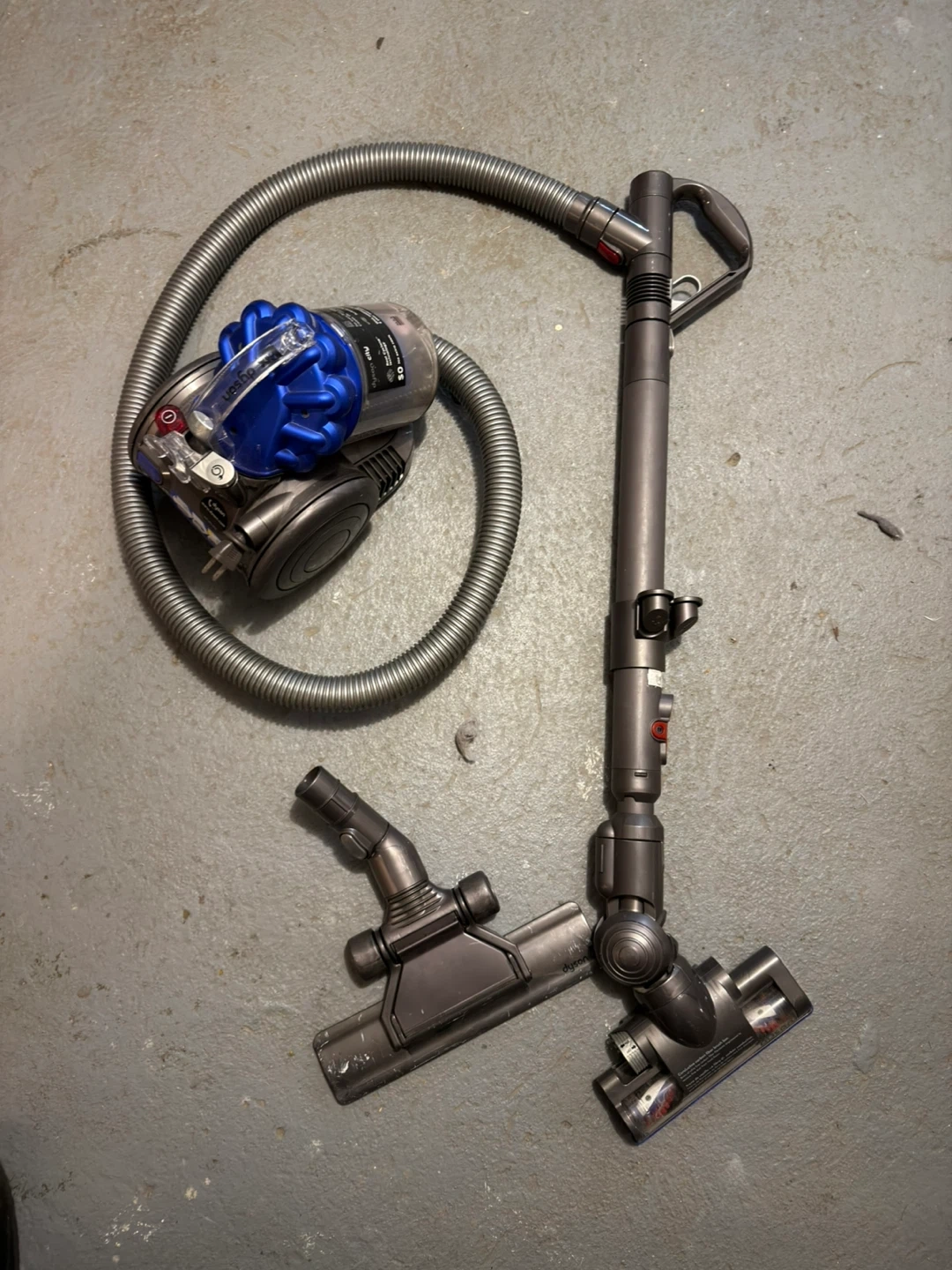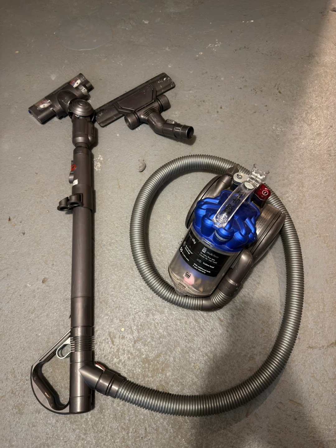 Selling a Dyson DC26 vacuum cleaner. It's in used condition and includes the hose, main body, and two attachments as pictured. Perfect for keeping your home clean!