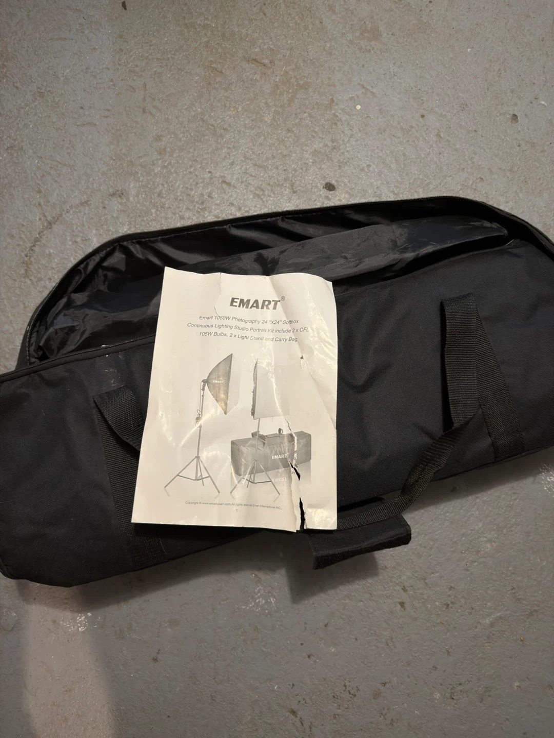 Selling an Emart 1050W Photography 24"x24" Softbox Continuous Lighting Studio Portrait Kit! This kit includes 2 x CFL 105W Bulbs, 2 x Light Stands, and a Carry Bag