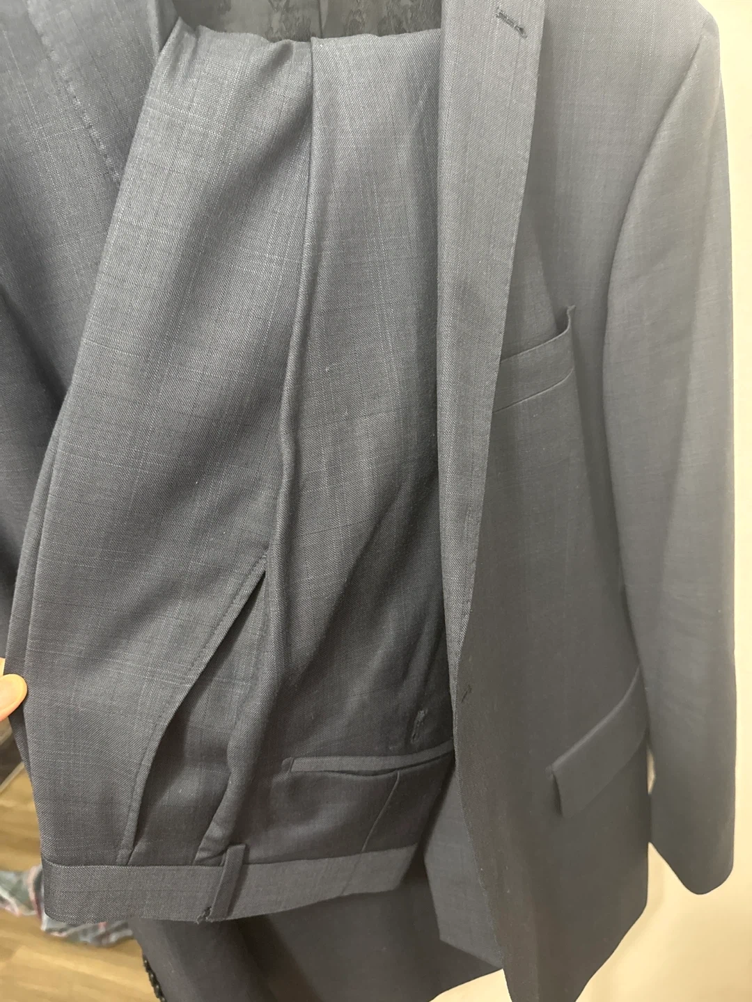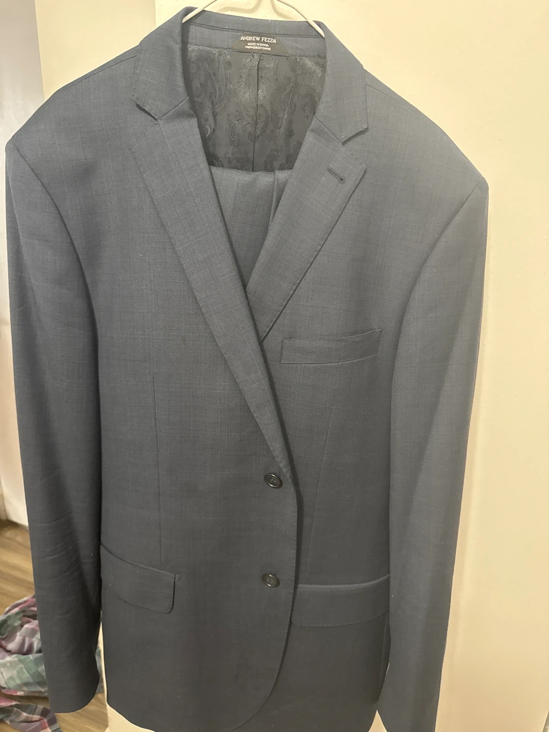 Selling an Andrew Fezza suit in great condition! The pants are size 38 and made of 100% wool.