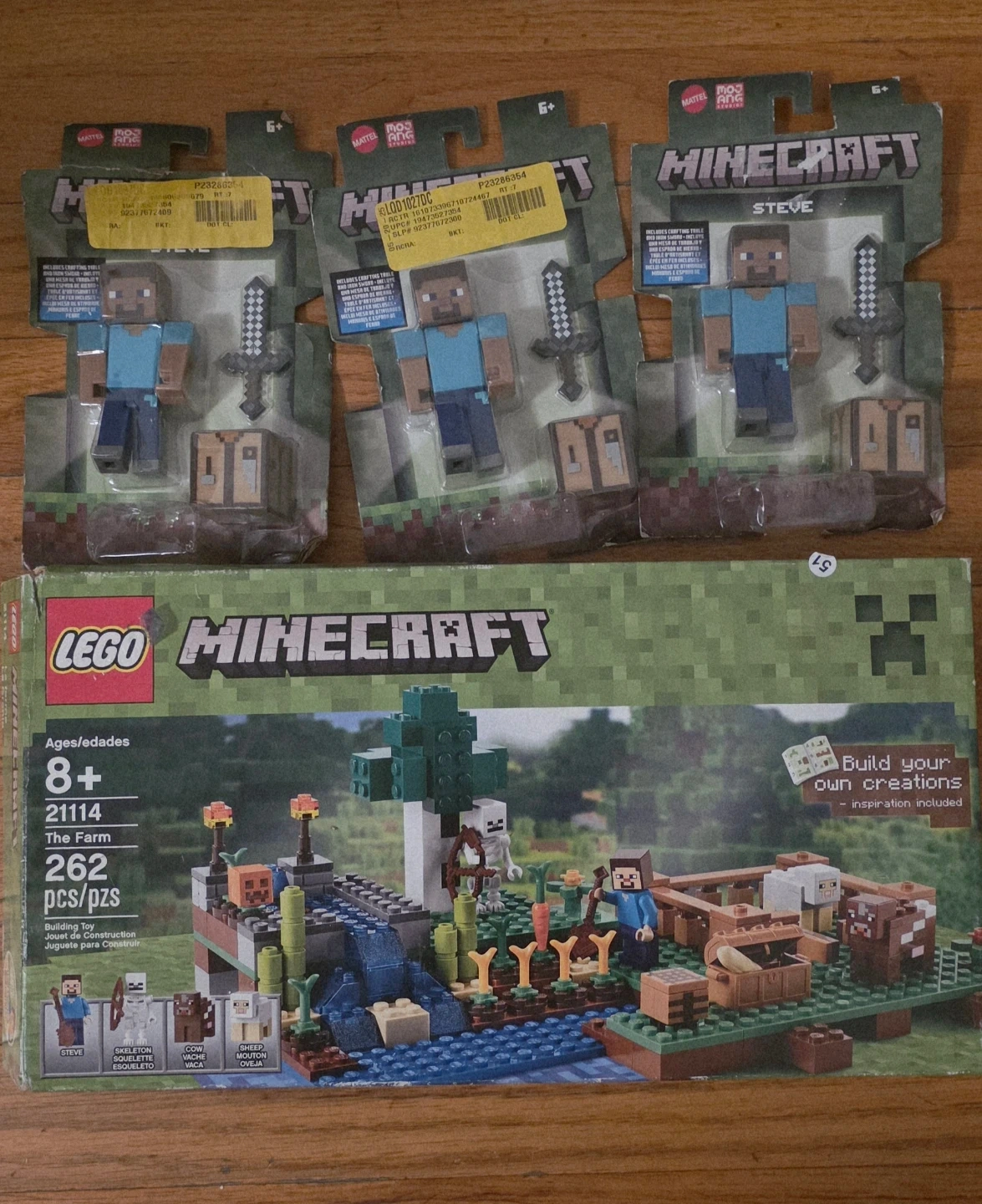 Selling a LEGO Minecraft set, The Farm (21114), with 262 pieces. Recommended for ages 8+. Also included are three Minecraft Steve figures. Great for any Minecraft fan!