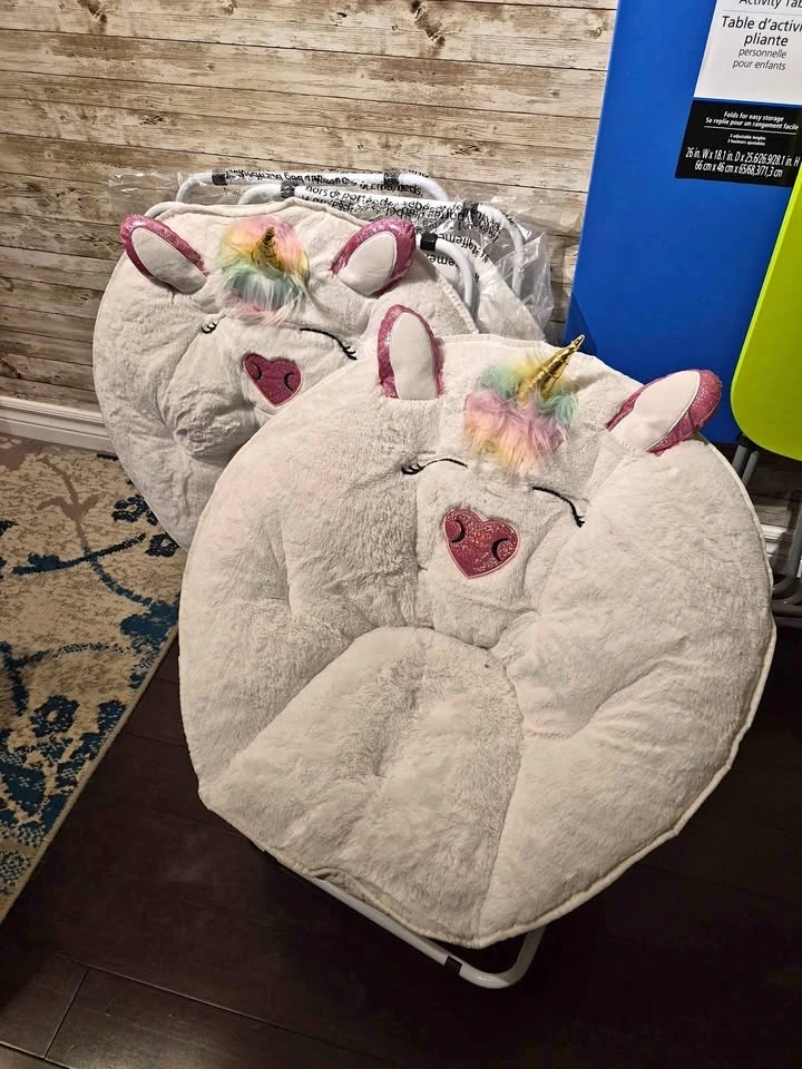 Buy & SellBrand New Toddler Unicorn Foldable Moon ChairBrand New Toddler Unicorn Foldable Moon Chair$15Brand New. 1 left. Retails $32.95 ea. Derry & McLaughlinWHERE TO MEETCheck LocationView MapSELLERverifiedJulie VuongMeadowvale Village892 reviews0 chats·0 favorites·7 viewsSEND CHAT TO SELLERHi Julie Vuong! I’m interested in your listing.Hi Julie Vuong! I’m interested in your listing.Get the Karrot app to chatSign In to chat