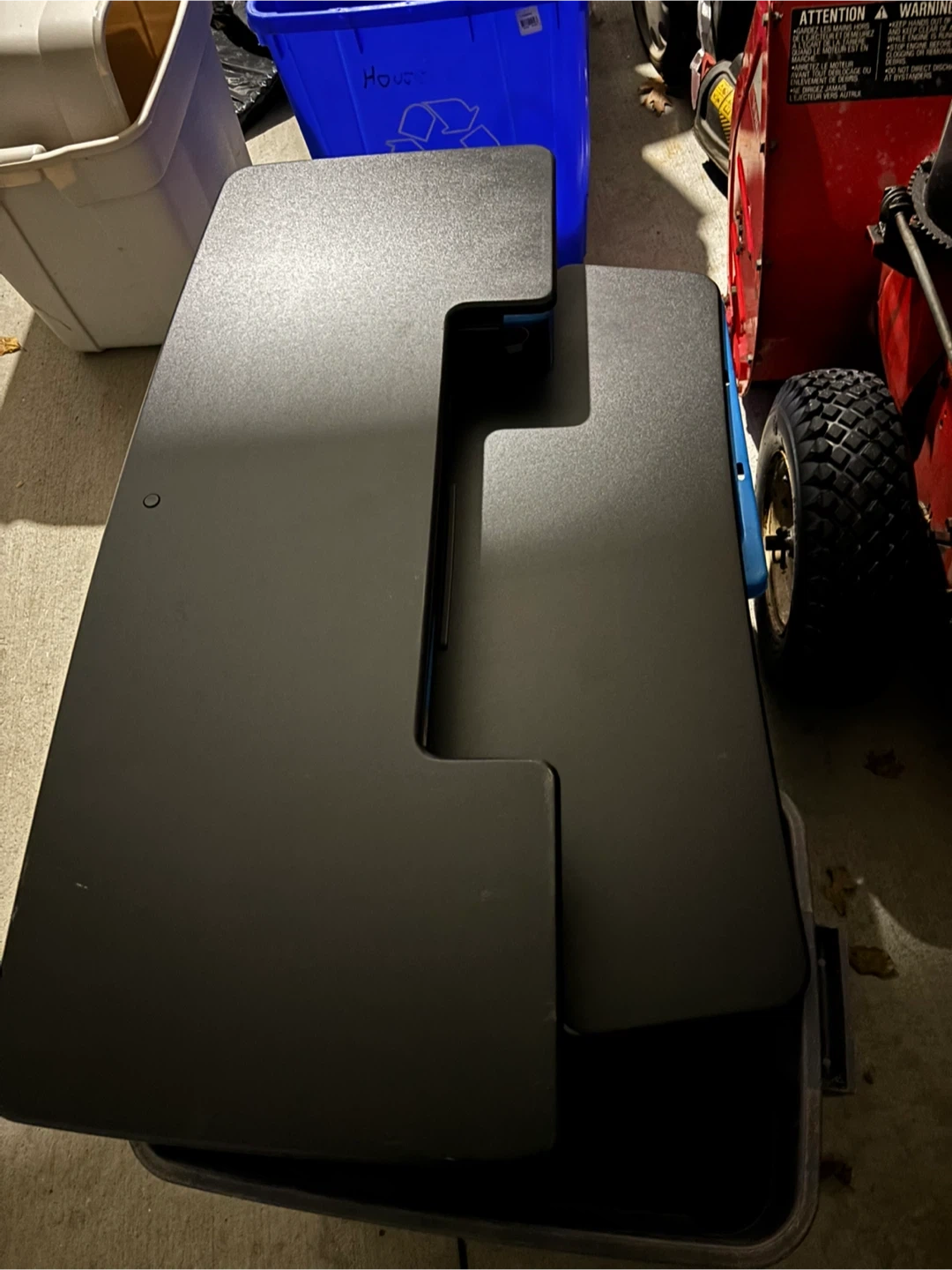 Selling an adjustable standing desk in black. It's in great condition and ready to help you work comfortably from home. It's a great option if you're looking for a standing desk!