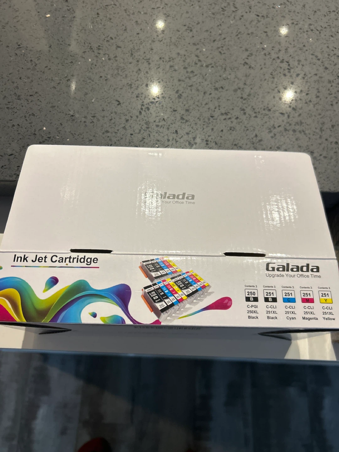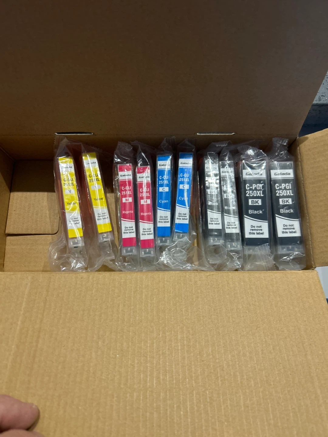 Selling , opened box of Galada ink cartridges. This set includes cartridges in black, cyan, magenta, and yellow. Perfect for your printing needs!