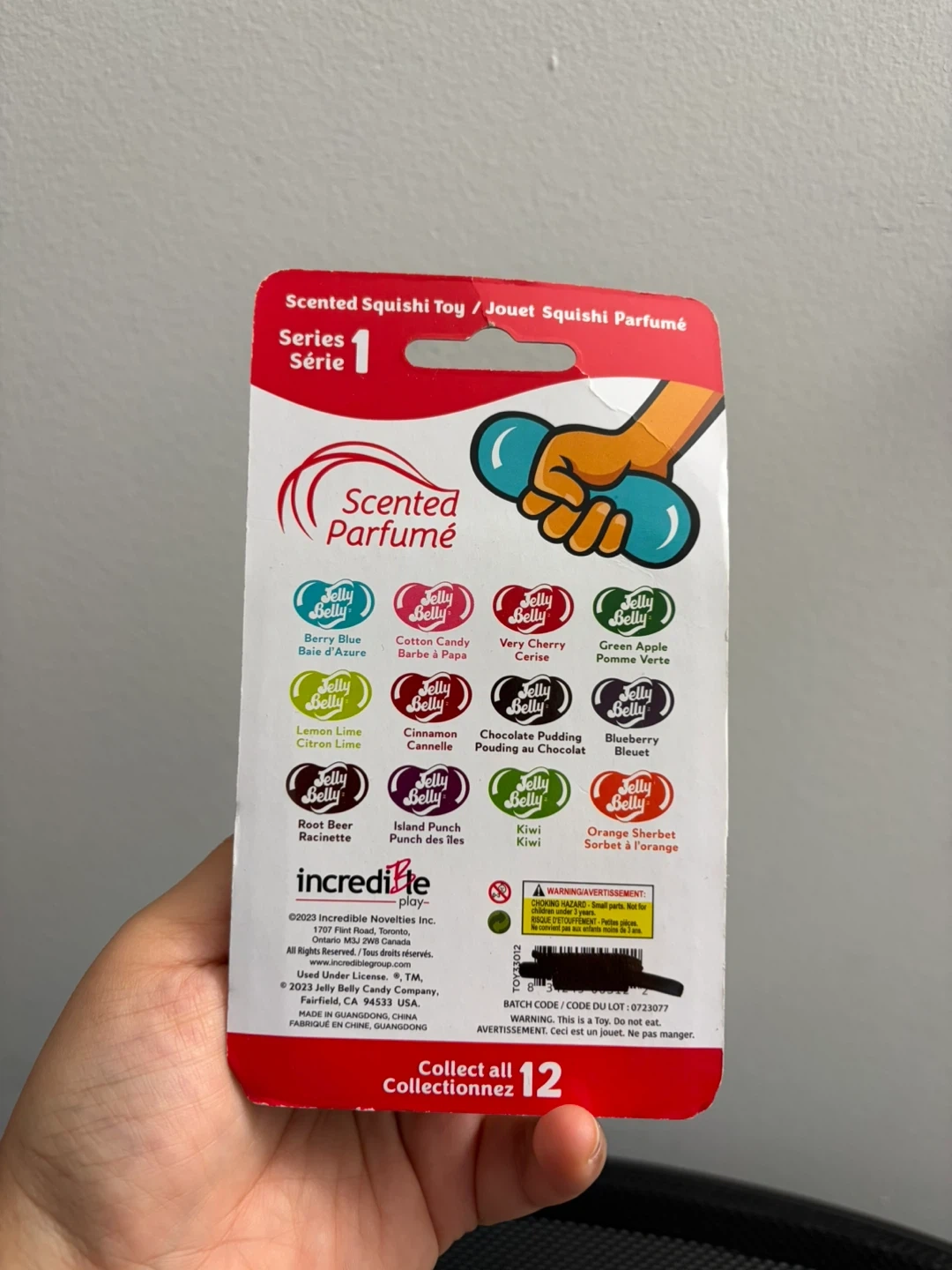 I have a new Jelly Belly scented squishy toy for sale! It's Series 1 and comes in the original packaging. This squishy is suitable for ages 6+ and has a mystery scent inside.
