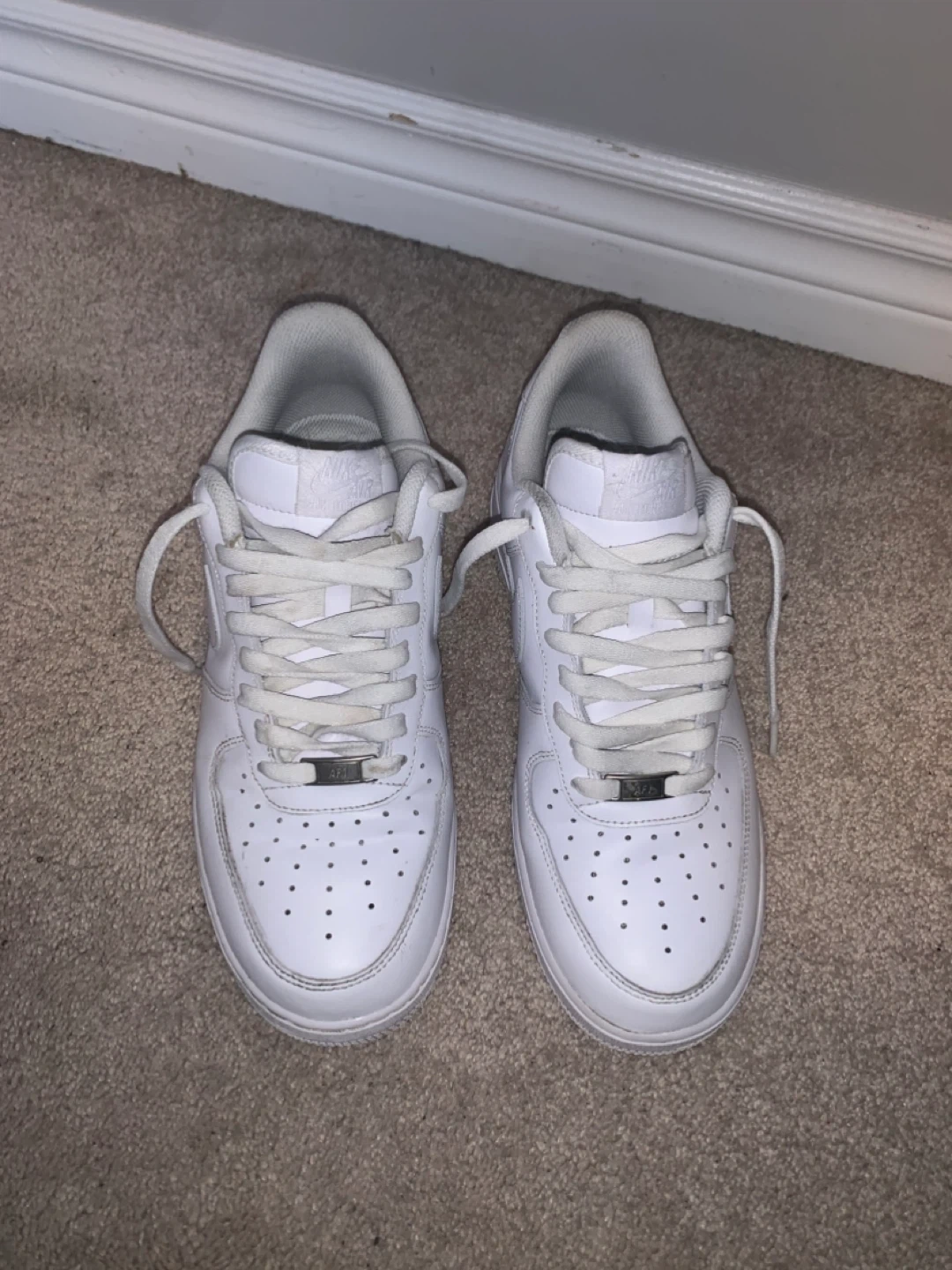 Selling a pair of classic Nike Air Force 1 Low sneakers in white. They're in good condition and ready for a new owner!