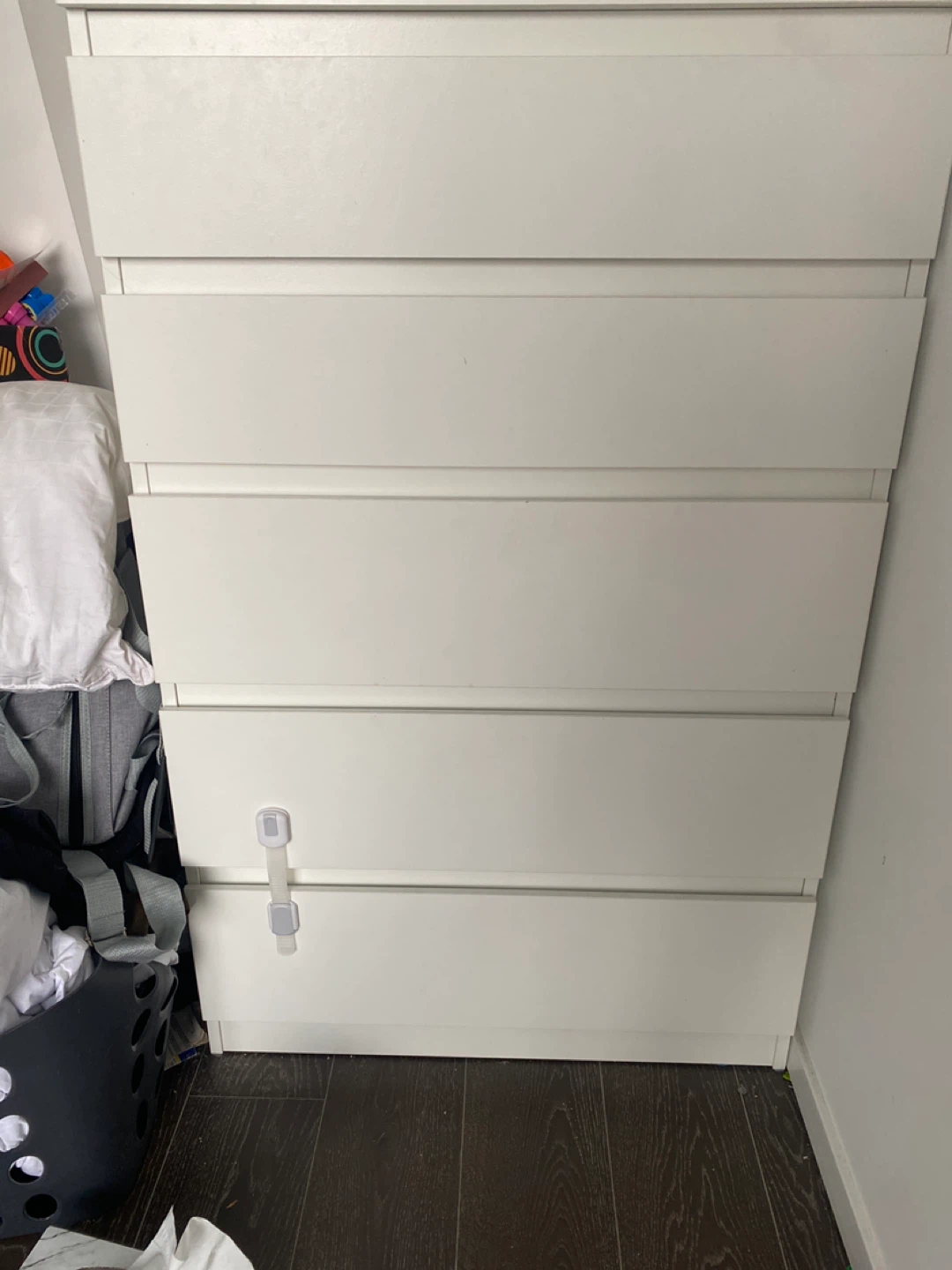 white IKEA Kullen dresser with 5 drawers. It's in good condition. Sold with instructions. You can come and pick it up by the 7 or 8 January but not before. The dresser will be sold as is, you can dismount it when you pick it up. Measurements are in cm. You can see a baby safety thing on the bottom. This will be removed. Cash Only. firm price