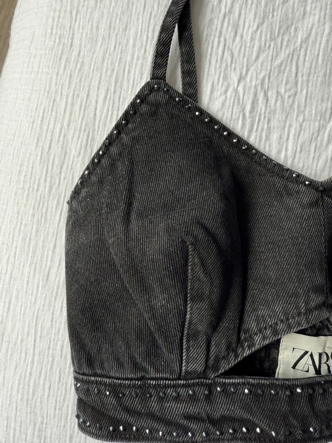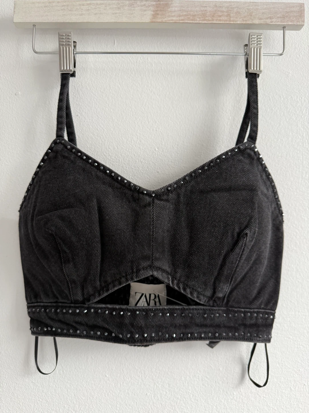 Cute Zara denim crop top with a cutout detail! It's in great condition and perfect for summer.