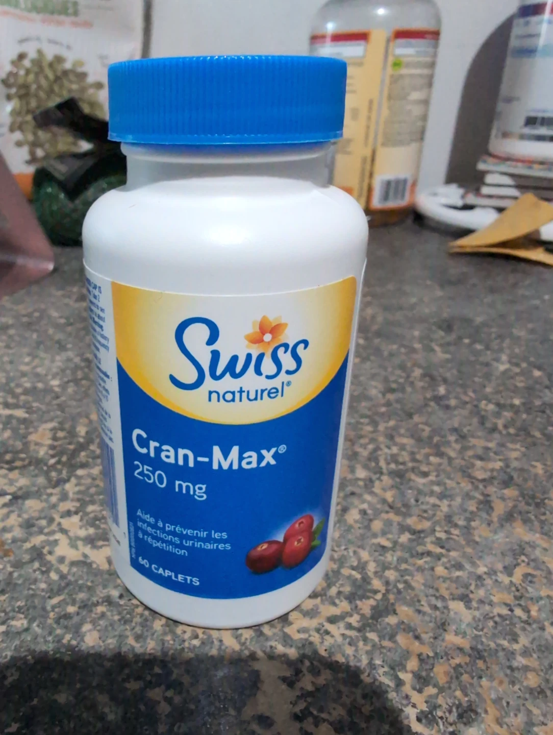 Selling a bottle of Swiss Natural Cran-Max 250mg capsules. These are great for helping to prevent recurrent urinary tract infections. Each bottle contains 60 caplets. The expiration date is September 2026