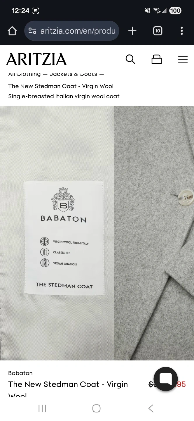 Babaton Stedman Coat - Virgin Wool - Size XL