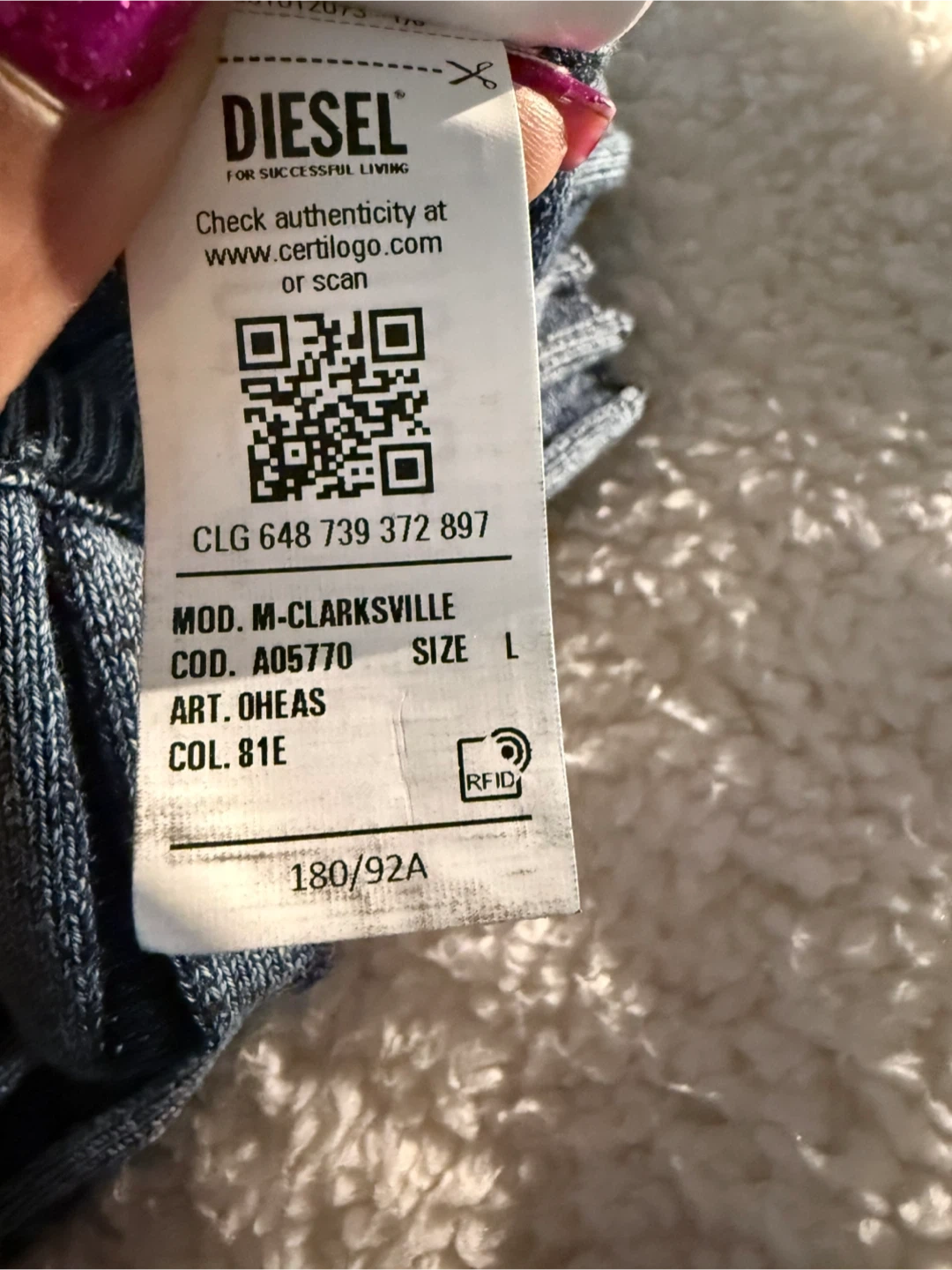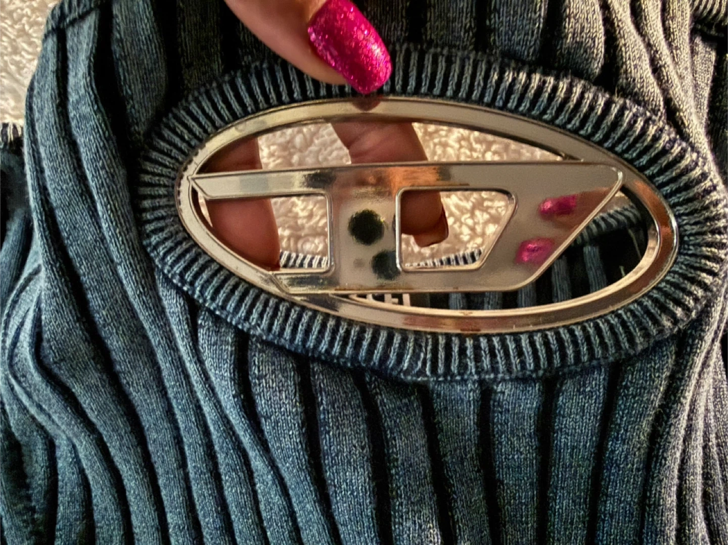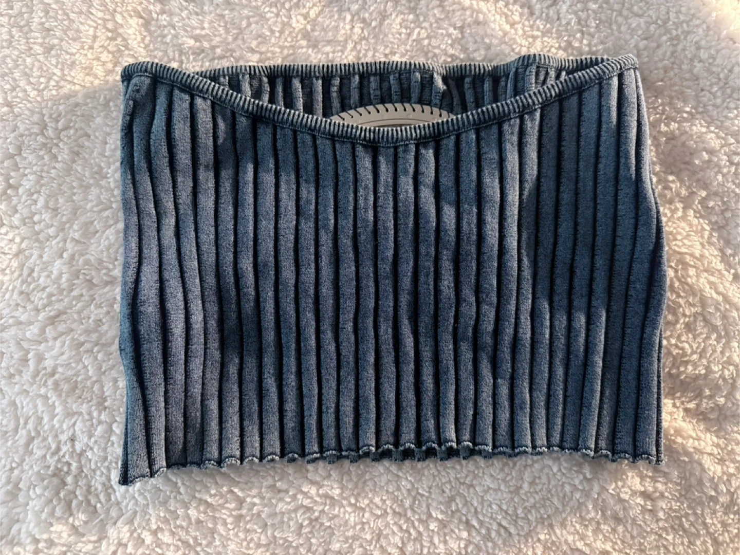 Diesel ribbed knit tube top in a blue color. It features the Diesel logo on the front. The material appears to be a soft, stretchy knit. Perfect for layering or wearing on its own!