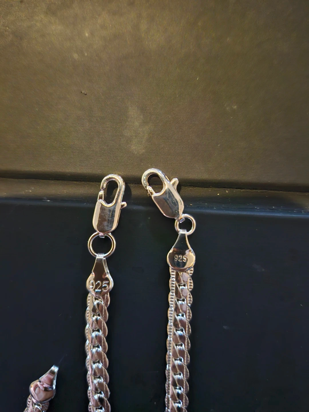 Selling a beautiful sterling silver necklace and bracelet set. Both pieces are marked '925' indicating sterling silver.
