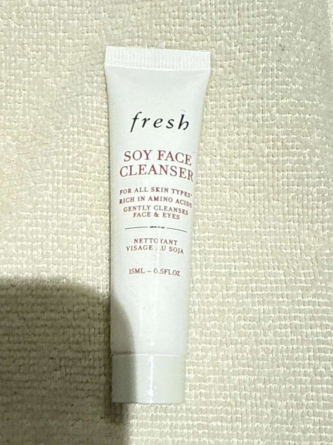 Selling a Fresh Soy Face Cleanser! This is a gentle cleanser suitable for all skin types. It's enriched with amino acids and effectively cleanses both face and eyes. The size is 15mL - 0.5FLOZ